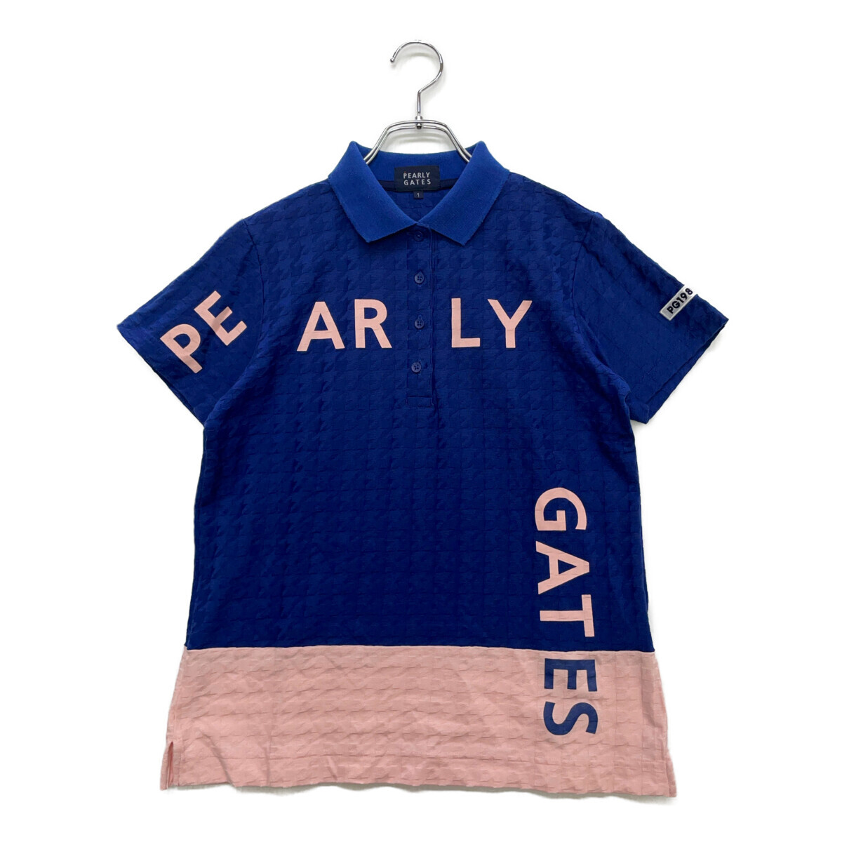 coco 中古【SALE】 パーリーゲイツ PEARLY GATES レディース 半袖ポロシャツ 1(M) 青×薄ピンク 千鳥格子 ネコポス発送可 93304
