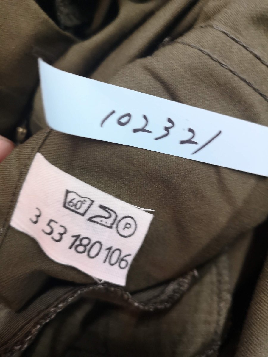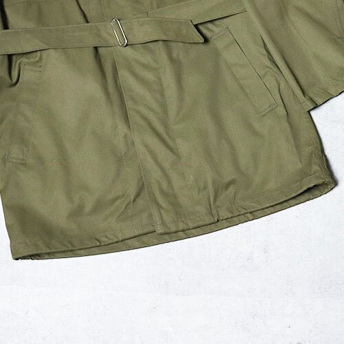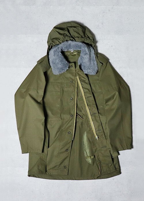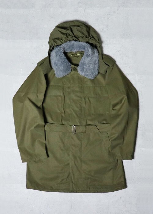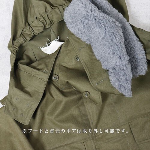 チェコ軍にて80年代に採用されていたウォータープルーフコートです。 9枚目までの写真は流用です。フードと襟のボアは取り外し可能です。 出品は53-180で着丈96センチ程度、身幅70センチ程度、肩幅56センチ程度、袖67センチ程度です。 素材:おそらくコットンで撥水の生地が使われていますが、完全防水ではございません。 ●状態:デッドストック ※フロントのジッパーはデリケートです、ご使用の際はやさしくお願いします。 沖縄離島を除く全国500円でお送りいたします、落札価格にプラスでお願いいたします。