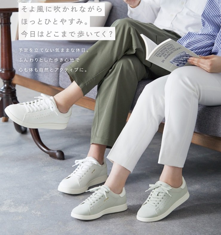 | 素材 | [アッパー]リサイクルレザー、抗菌防臭加工ライニング [インソール]パワークッション(抗菌防臭加工) [ミッドソール]パワークッションプラス、合成樹脂、特殊樹脂シャンク [アウトソール]ラ合成樹脂、ラバー |