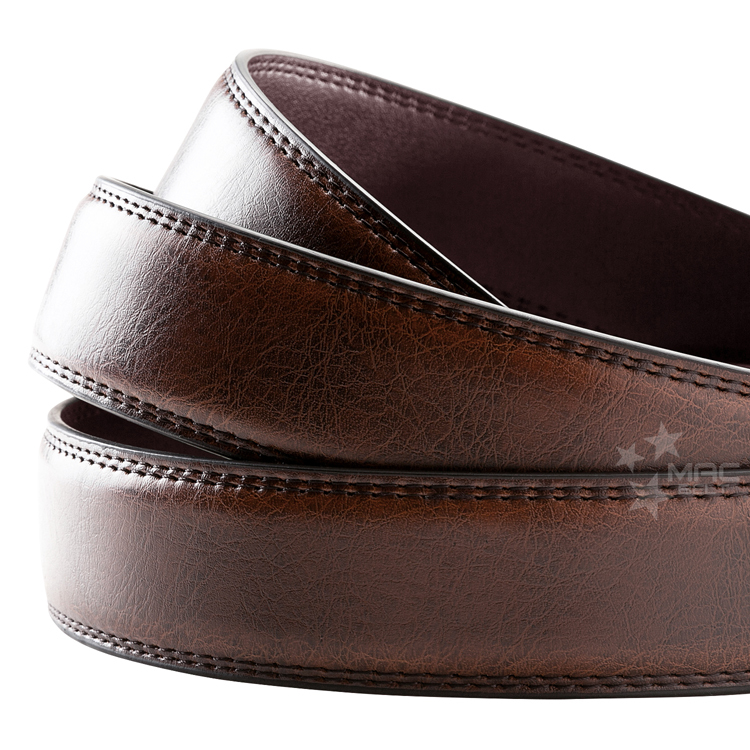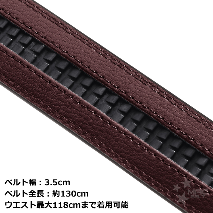 サイズ調整はいつでもワンタッチで自由自在。快適レザーベルトです。