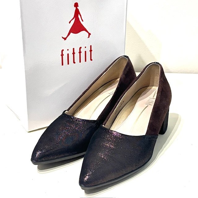 | fitfit フィットフィット ポインテッドヒールニーカー 23cm 2E相当 84043 バイカラー 太ヒール パンプス 外反母趾 コンビタイプ 甲深タイプ レディース HMY |