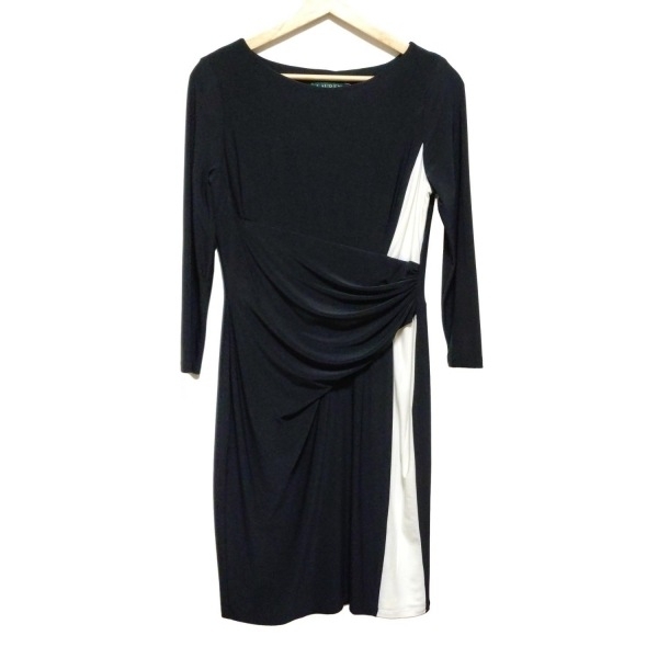 ラルフローレン RalphLauren サイズ8 P - 黒×白 レディース クルーネック/長袖/ひざ丈/LAUREN ワンピース