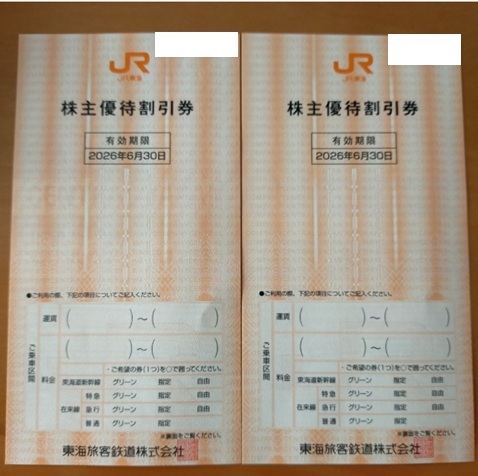 JR東海 株主優待券 割引券 有効期限2026年6月30日 2枚 東海旅客鉄道 特急券 急行券 グリーン券 指定席券 最大20%割引