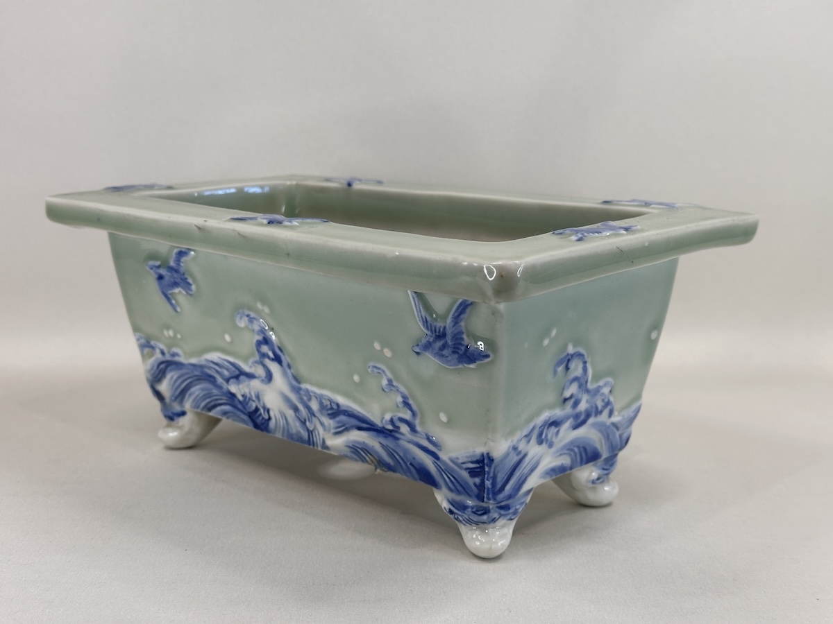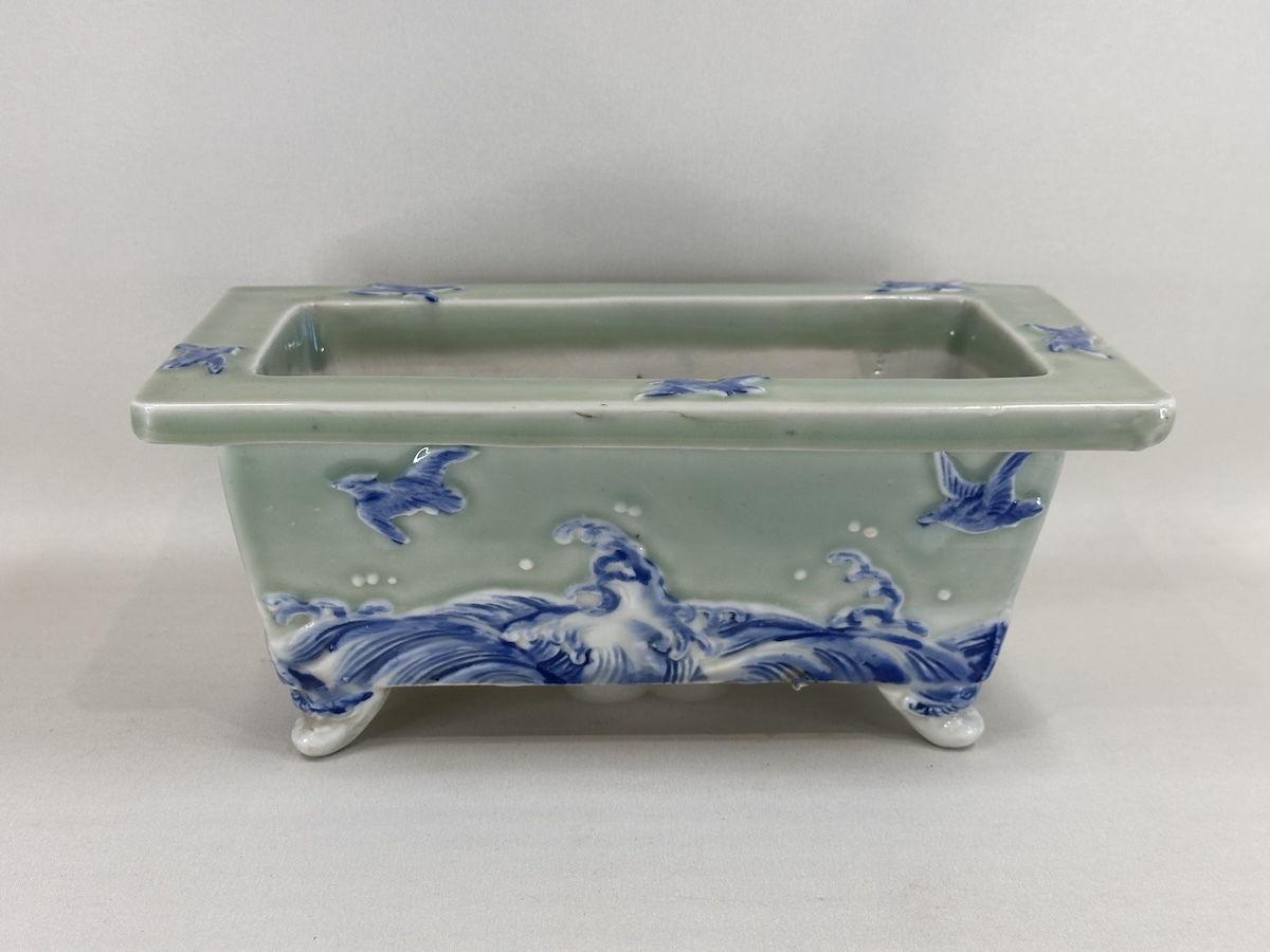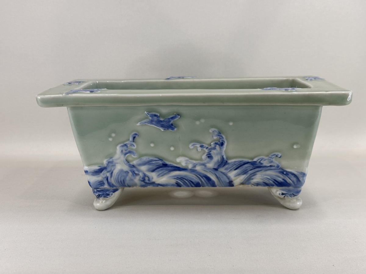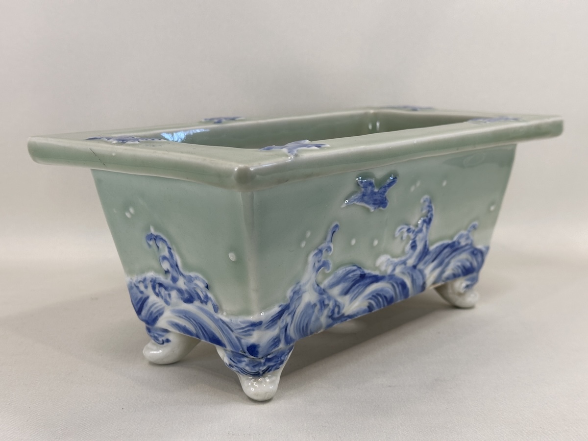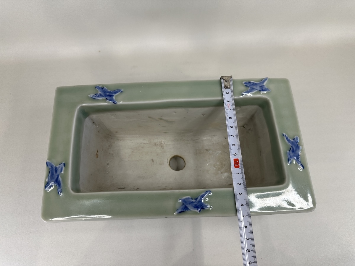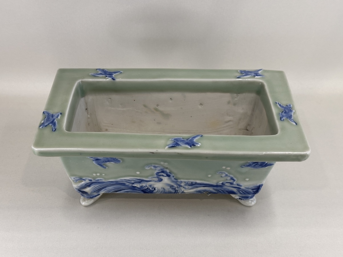 | 青磁盆栽鉢『波に千鳥の図』瀬戸焼 尾張青磁 | ||