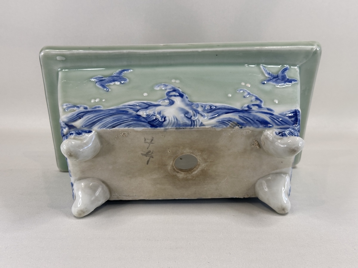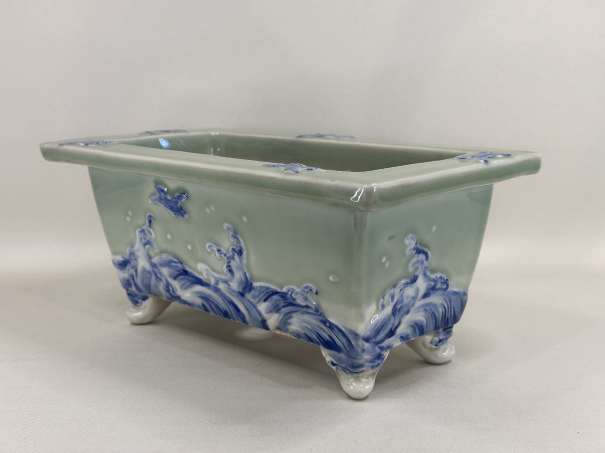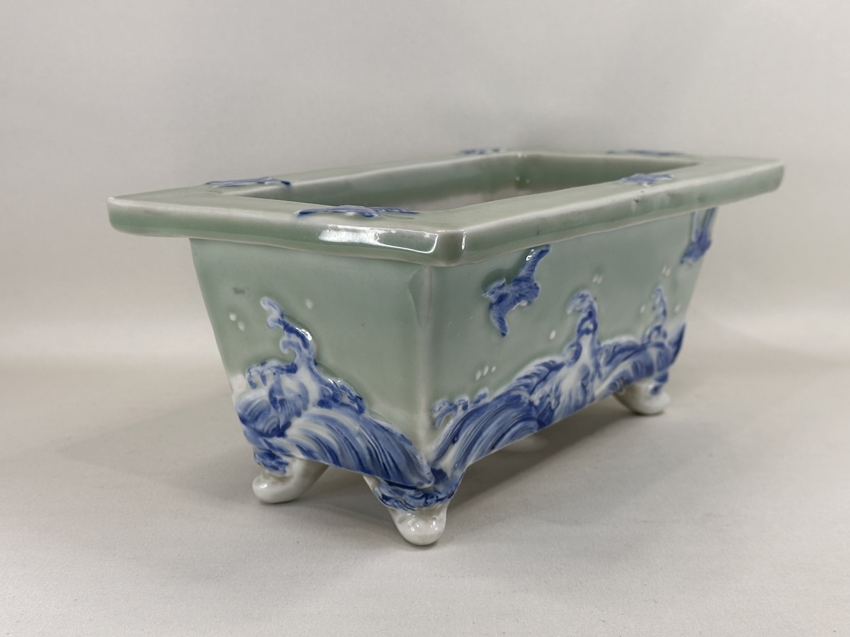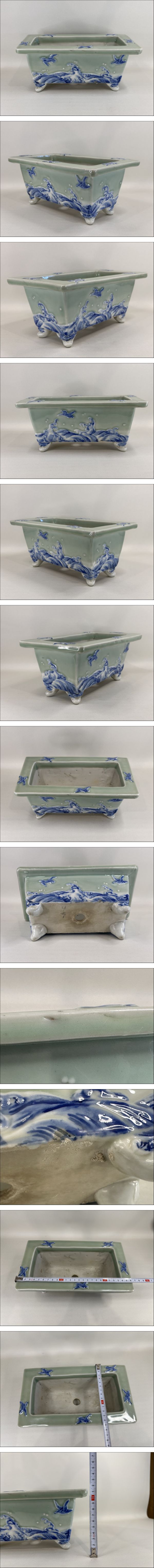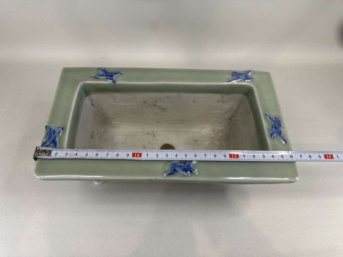 | 青磁盆栽鉢『波に千鳥の図』瀬戸焼 尾張青磁 | ||