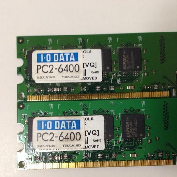 | ★商品説明★ | 取引トラブルを防ぐ為、必ずこちらへアクセスして下さい。 写真は使い回しとなりますので、実際にお送りするものはラベル・チップ等が異なる場合も御座います。 ■仕様一覧 デスクトップPC用メモリー ※メーカー:I-O DATA ※状態:中古品 ※容量:1GB ※メモリータイプ:DDR2-800 ※チップ規格:PC2-6400 ※数量:2枚 ご注意:こちらの商品は動作確認済となりますが、パソコンとの相性は保証致しませんので、よく適用機種をご確認の上、ご購入をご検討下さい。 相性保証の商品につきましては、メールにてお気軽にお問い合わせ下さい。 | |