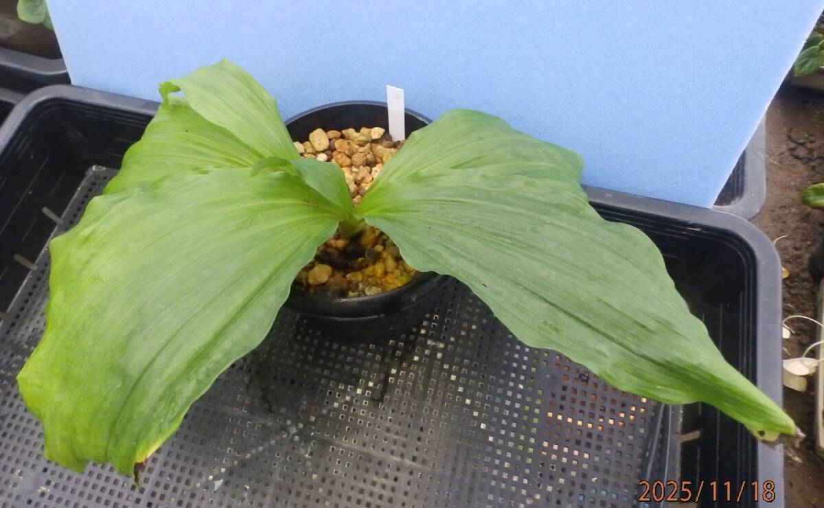 ・苗の状態は、2芽株立ち 冬至芽 2芽+新木(葉長 約 15、20、22 Cm位 の3枚)と(葉長 約 20、22 Cm位 の2枚)+バルブ  です 。