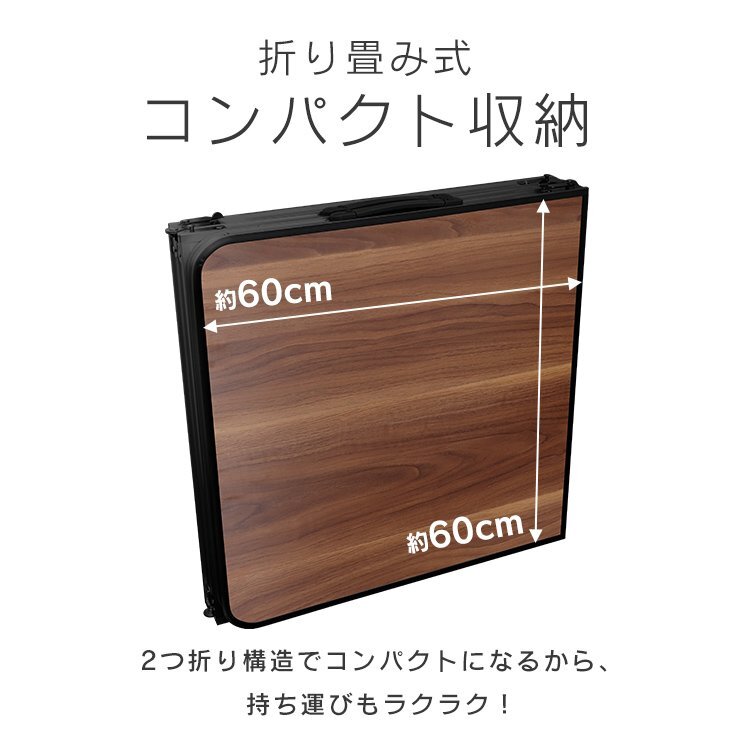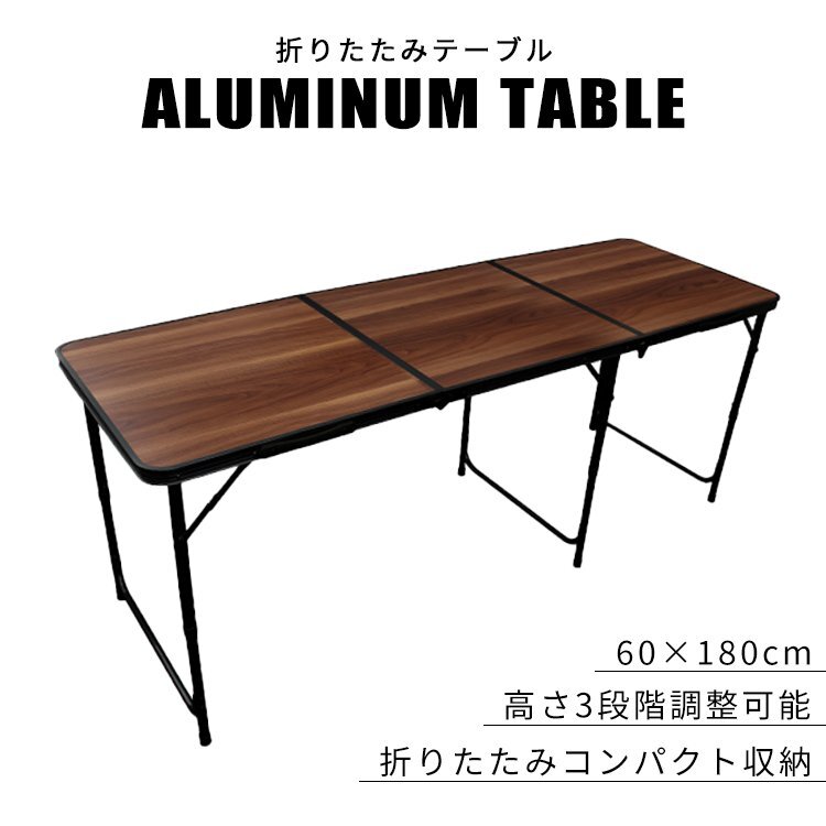 車のトランクに入れる時や持ち運びの際にもとても便利な取っ手付きで持ち運びもラクラク!! サビに強いアルミを使用。 天板には防水加工が施されています。 テーブルは3段階の高さ調節ができ、お好みのスタイルに合わせて「ハイスタイル」「ロースタイル」の2パターンでお使いいただけます。 キャンプ、バーベキュー、お花見などにとても便利。 気軽にアウトドアレジャーをお楽しみいただけます!! 【商品仕様】 折りたたみ式 テーブルサイズ(約):幅180cm×奥行60cm×高さ55cm/62cm/70cm ※高さ3段階調節 カラー:ダークウォルナット 収納サイズ(約):幅62cm×奥行10cm×高さ62cm 耐荷重(約):20kg 重量(約):7.2kg 材質:アルミ、MDF(耐熱・耐水加工)、ポリエステル、スチール 【注意事項】 ・初めてご使用の場合、耐久性を高めるために天板がフラットにならず山なりになっております。 適度な力で上から押していただくと改善されますので、お試しください。初期不良ではございません。 ・海外製品で、簡易梱包での輸入のため風防に擦れや多少の小キズなどがある場合がございますが、商品自体には問題ありませんのでご了承下さい。 ・商品は、モニターによって色合いが異なって見える場合があります。 ・仕様・デザインは改良のため予告なく変更することがあります。 【その他ラインナップ】 ・70cm ・90cm(ベンチ付き) ・90cm(4色選択・ベンチなし) ・120cm(イス付き) ・120cm(4色選択・イスなし) ・135cm(BBQタイプ) ・180cm(4色選択・イスなし) ・240cm(4色選択・イスなし) |