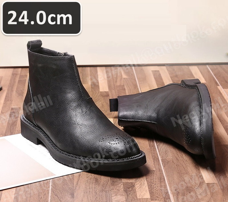 PUレザー メンズ シュートブーツ ブラック サイズ 24.0cm カジュアル 屈曲性 通勤 軽量 インポート品【n028】
