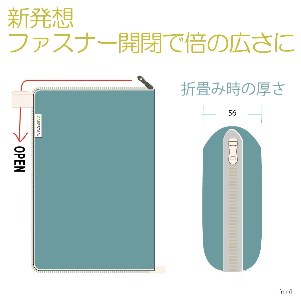 ・意匠登録済みのファスナー収納形状が多用途な収納も可能にしてくれます。
