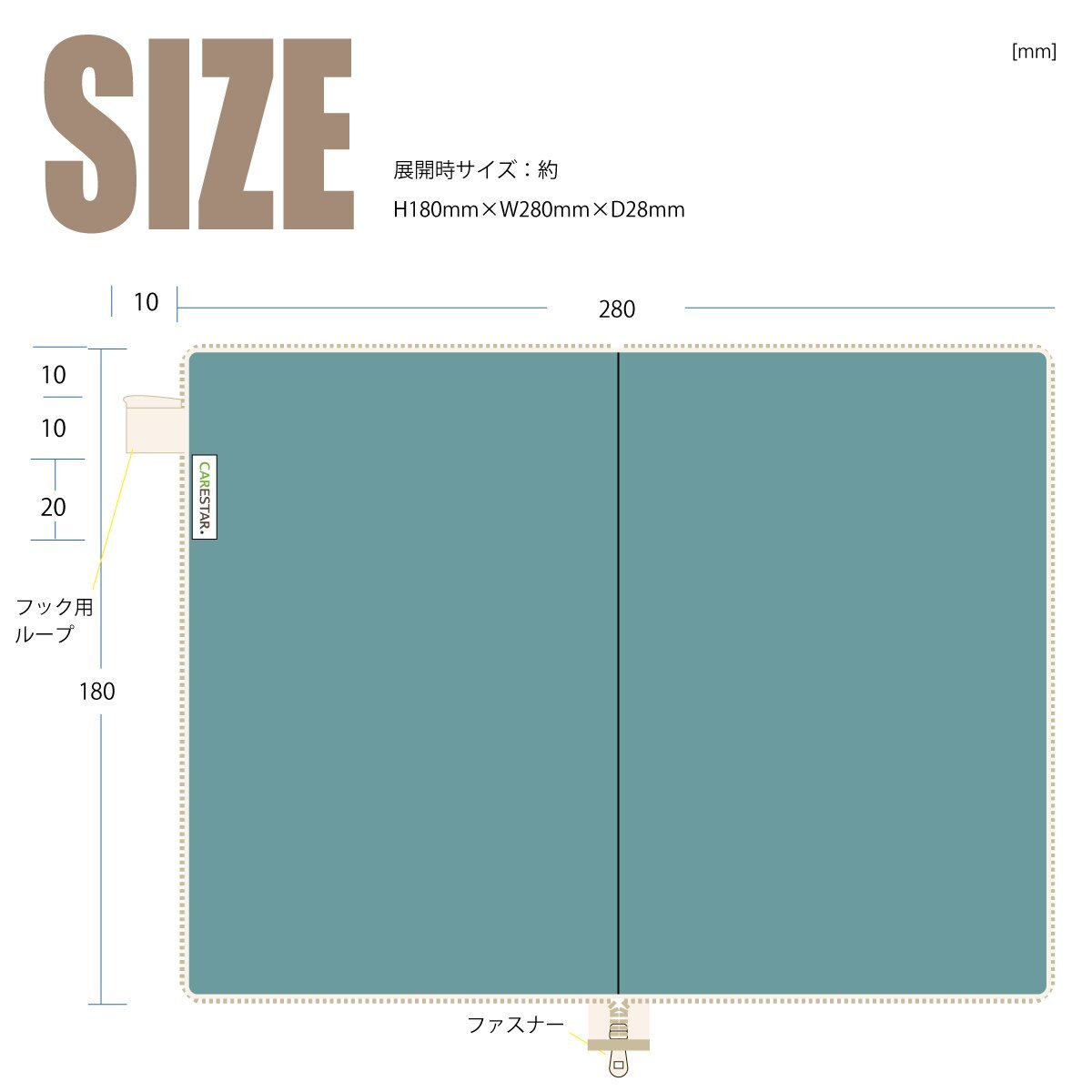 本体(展開時) 縦:約18cm×横:約28cm×厚さ:約2.8cm