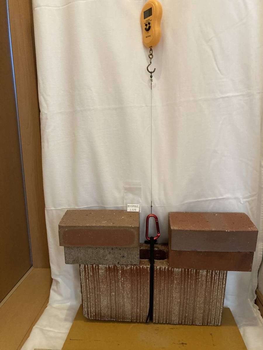 20キロ強度テスト実施(画像6.7.8.9.10.)、ブロック10㎏+レンガ4個10㎏= 20㎏