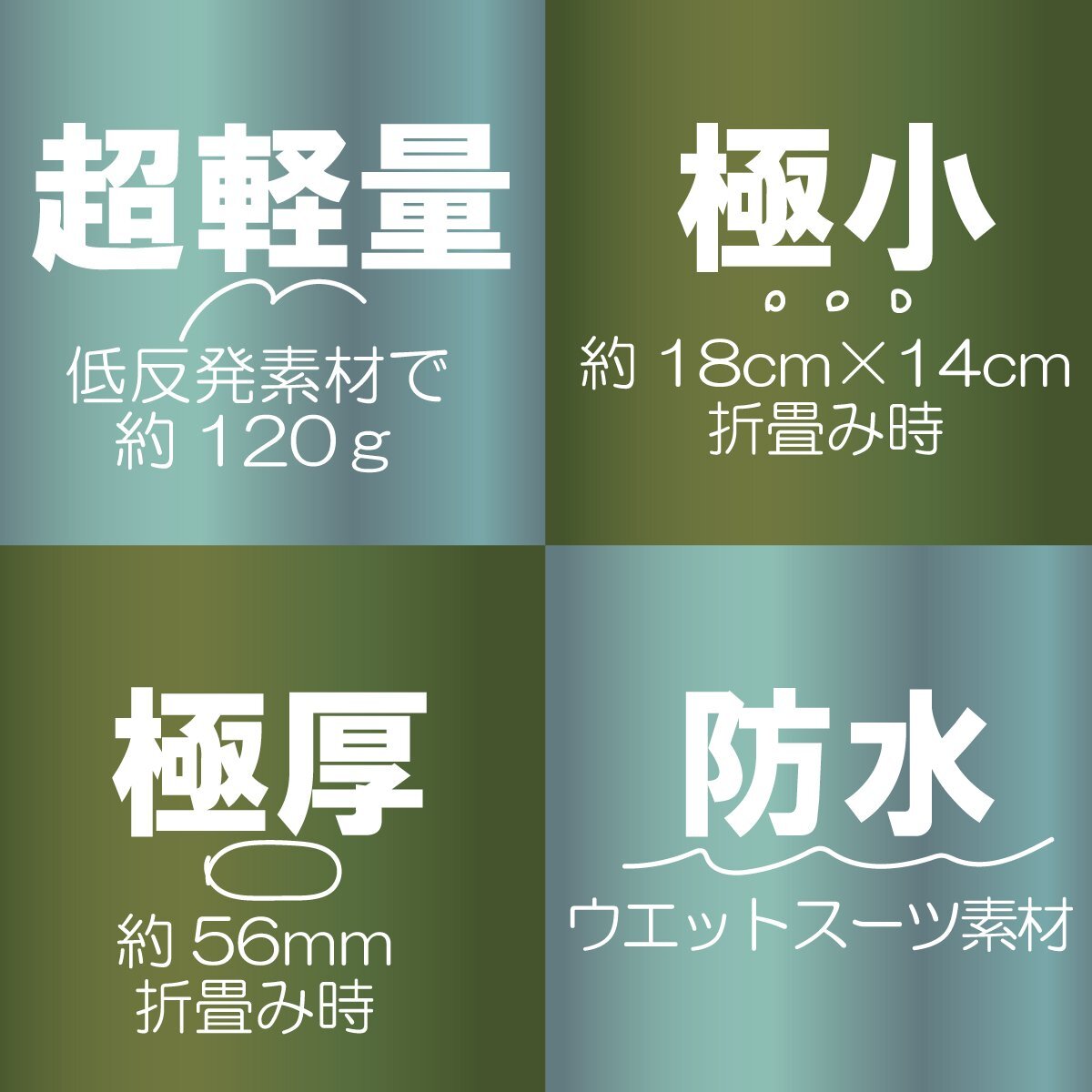 ・重さによる持ち運びの不便さを感じさせないクッションとしては ・防水で濡れた場所でも水分が染みてこない。独自開発(特許庁意匠登録済)ファスナー開閉式で一発収納