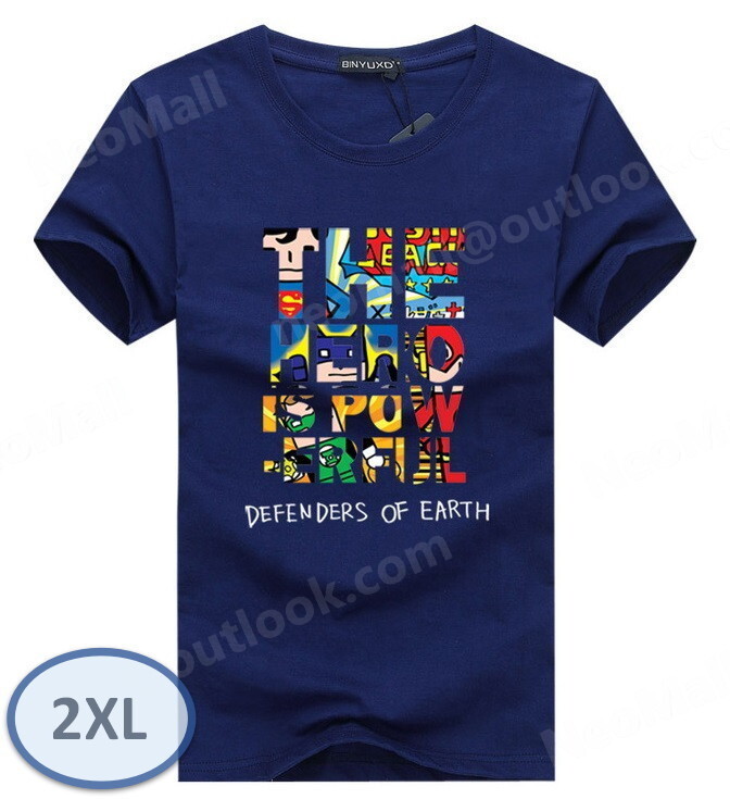 夏にピッタリ ☆ 丸首 半袖 Tシャツ【068】 ブルー 2XLサイズ トップス シャツ シンプル イラスト プリント 春夏