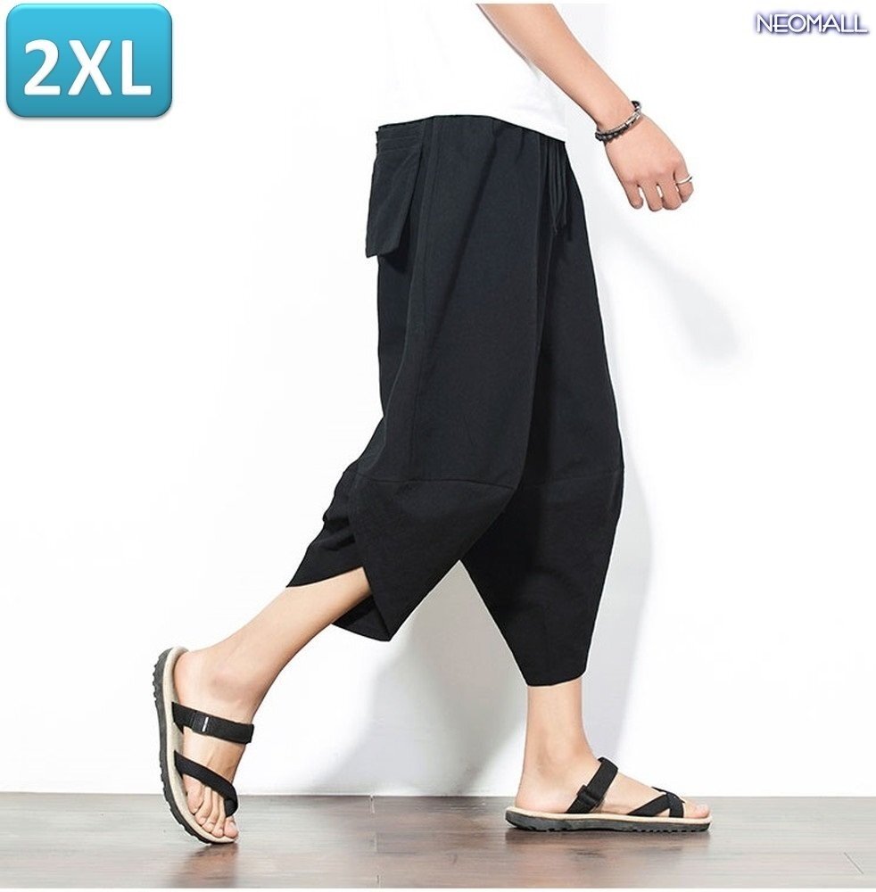 大人気☆メンズ サルエルパンツ ブラック 2XL カジュアル ヒップホップ 7分丈 スウェット 無地 ポケット付 オールシーズン【339】