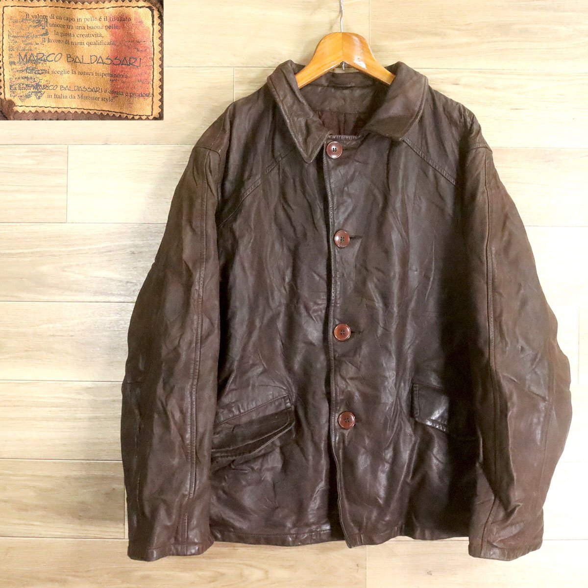 M4O/O9.30-6 イタリア製 MARCO BALDASSARI レザーカーコート 本革 革ジャン 皮ジャン レザージャケット ユーロ古着 メンズ