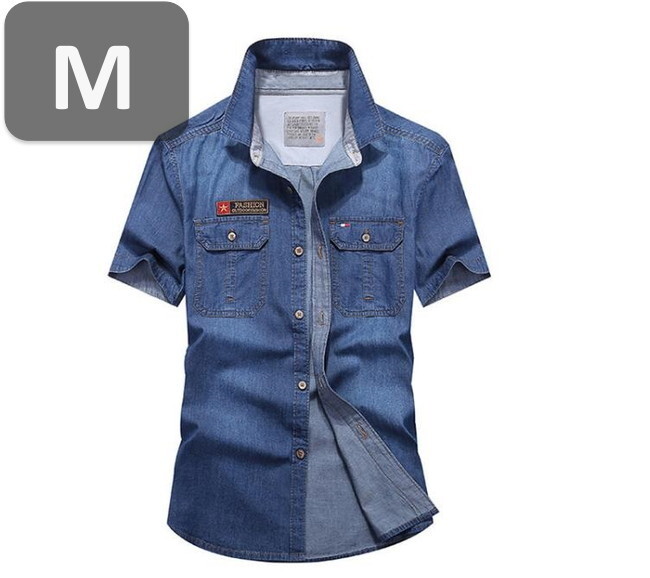 メンズ 半袖 デニム シャツ ブルー M 半袖 デニム シャツ 春秋【n190】