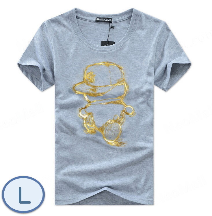 夏にピッタリ ☆ 丸首 半袖 Tシャツ【070】 グレー Lサイズ トップス シャツ シンプル イラスト プリント 春夏
