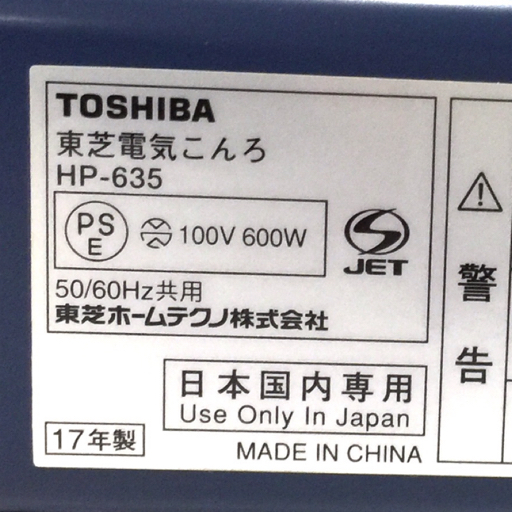 | 美品 TOSHIBA HP-635 電気こんろ 2017年製 ブルー 動作確認済み 東芝 |