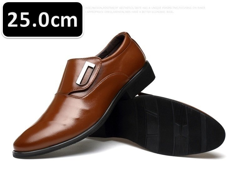 メンズ ビジネス レザー シューズ ブラウン サイズ 25.0cm 革靴 靴 カジュアル 屈曲性 通勤 軽量 柔らかい 新品 【apa-157】