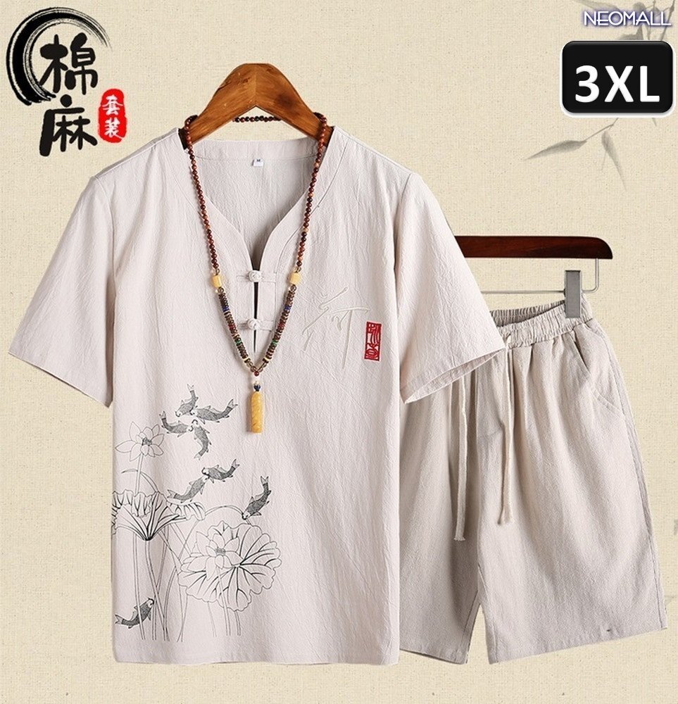 夏にピッタリ 【408】ルームウェア セットアップ ベージュ 3XLサイズ 半袖 パンツ メンズ 部屋着 メンズ オフ 清涼
