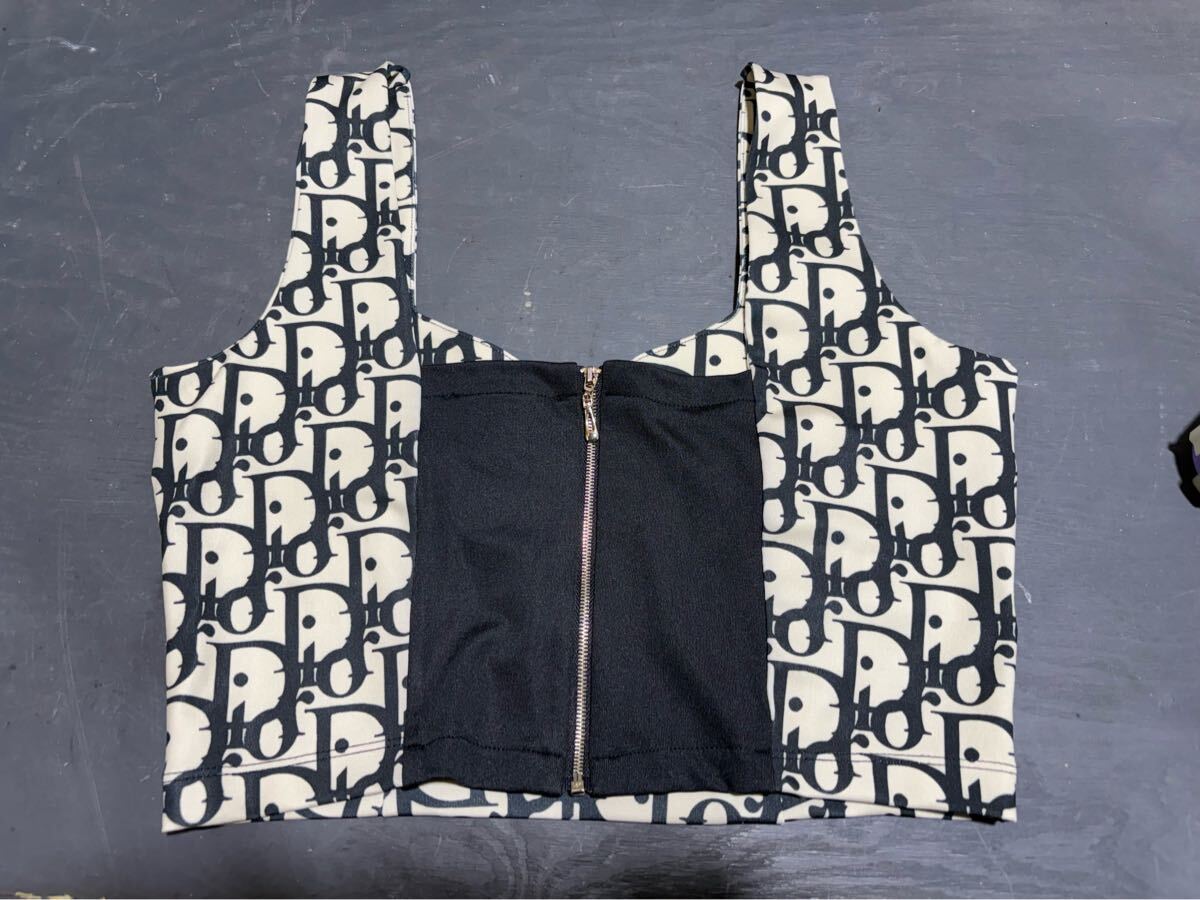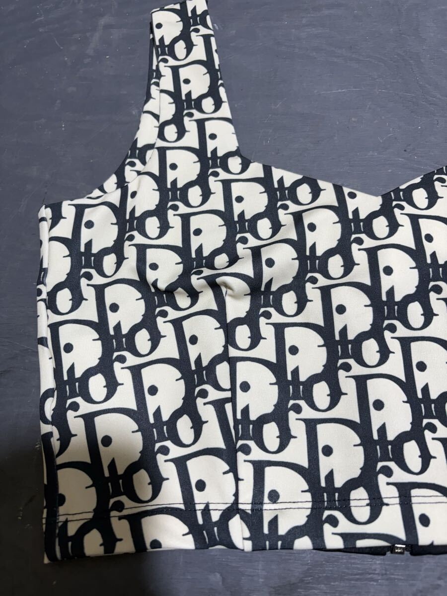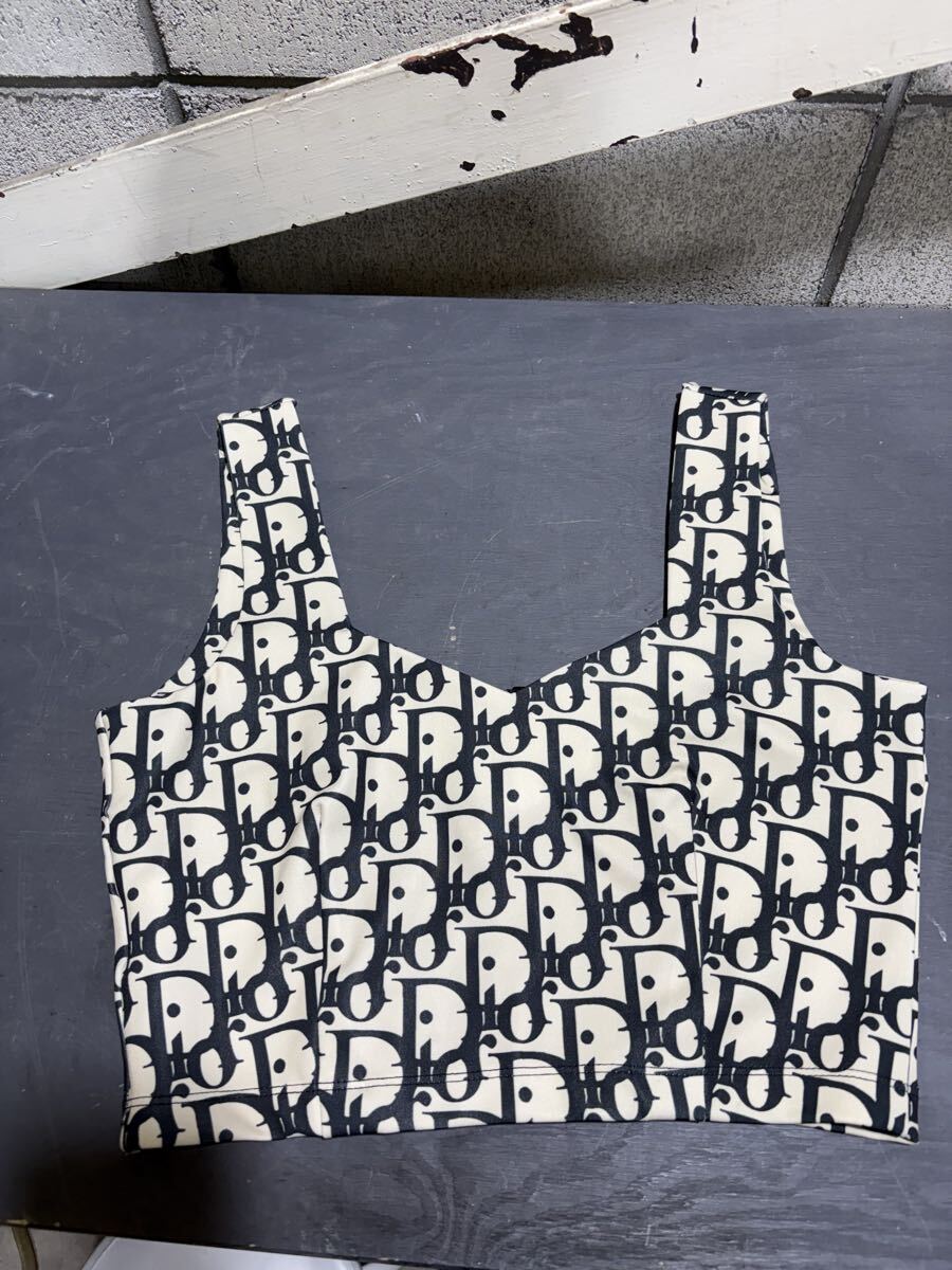 中古美品 Christian Dior ディオール クロップドトップ トップス タンクトップ オブリーク パターン クリスチャンディオール フランス製