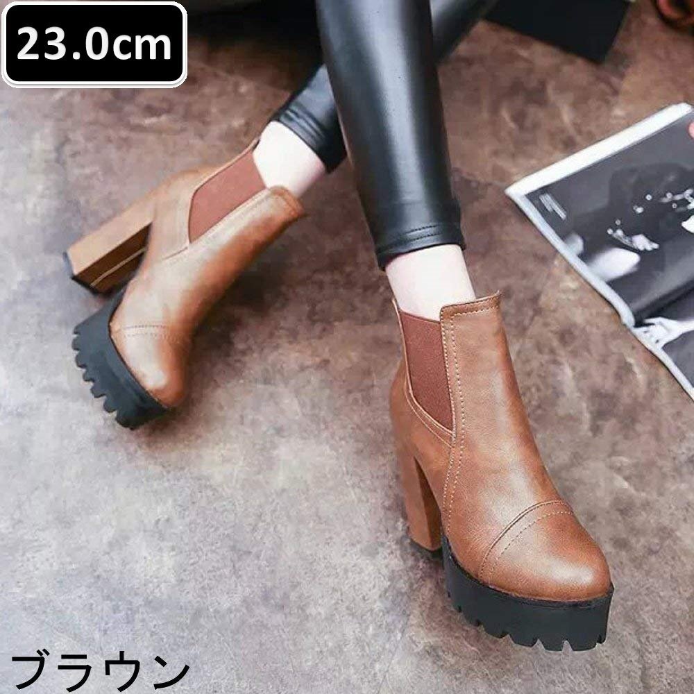 ショートブーツ ブラウン 23.0cm 101 サイドゴア サイドゴアブーツ レディース 厚底 厚底ソール チャンキーヒール ショート ショート丈