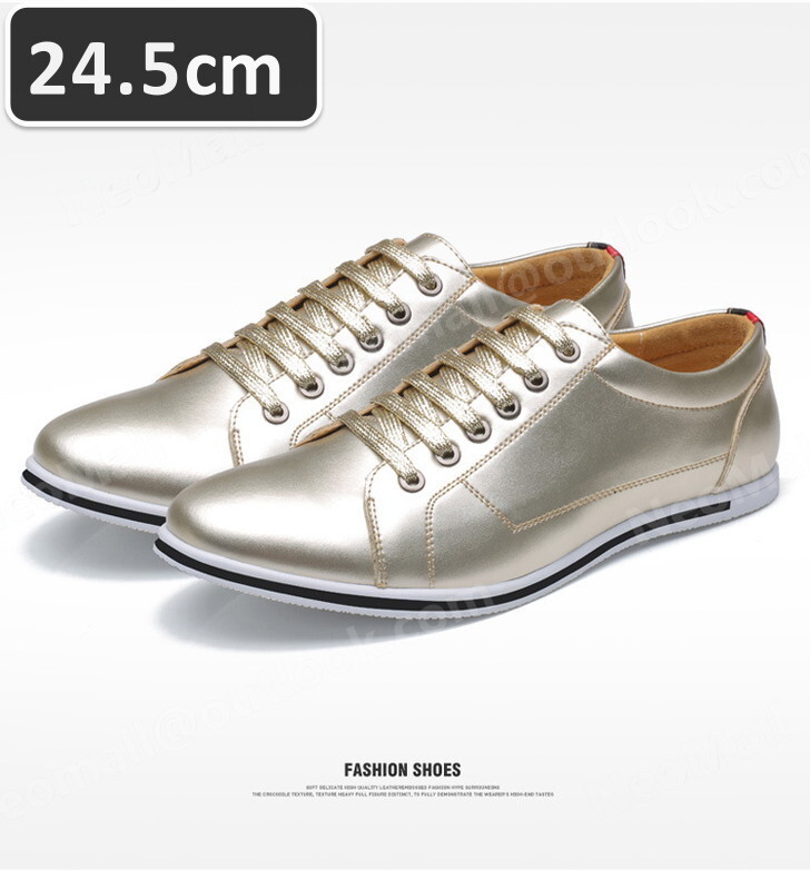 メンズ カジュアル スニーカー ゴールド サイズ 24.5cm 革靴 靴 カジュアル 屈曲性 通勤 軽量 インポート品【n044】