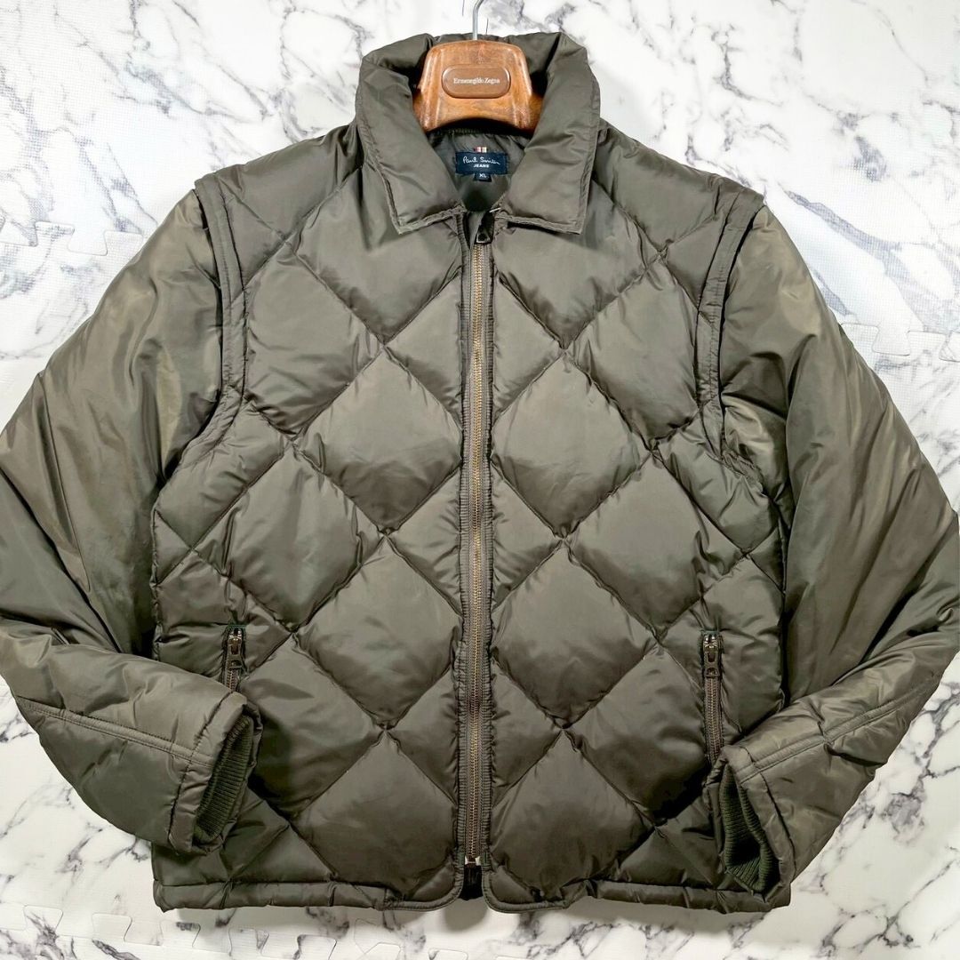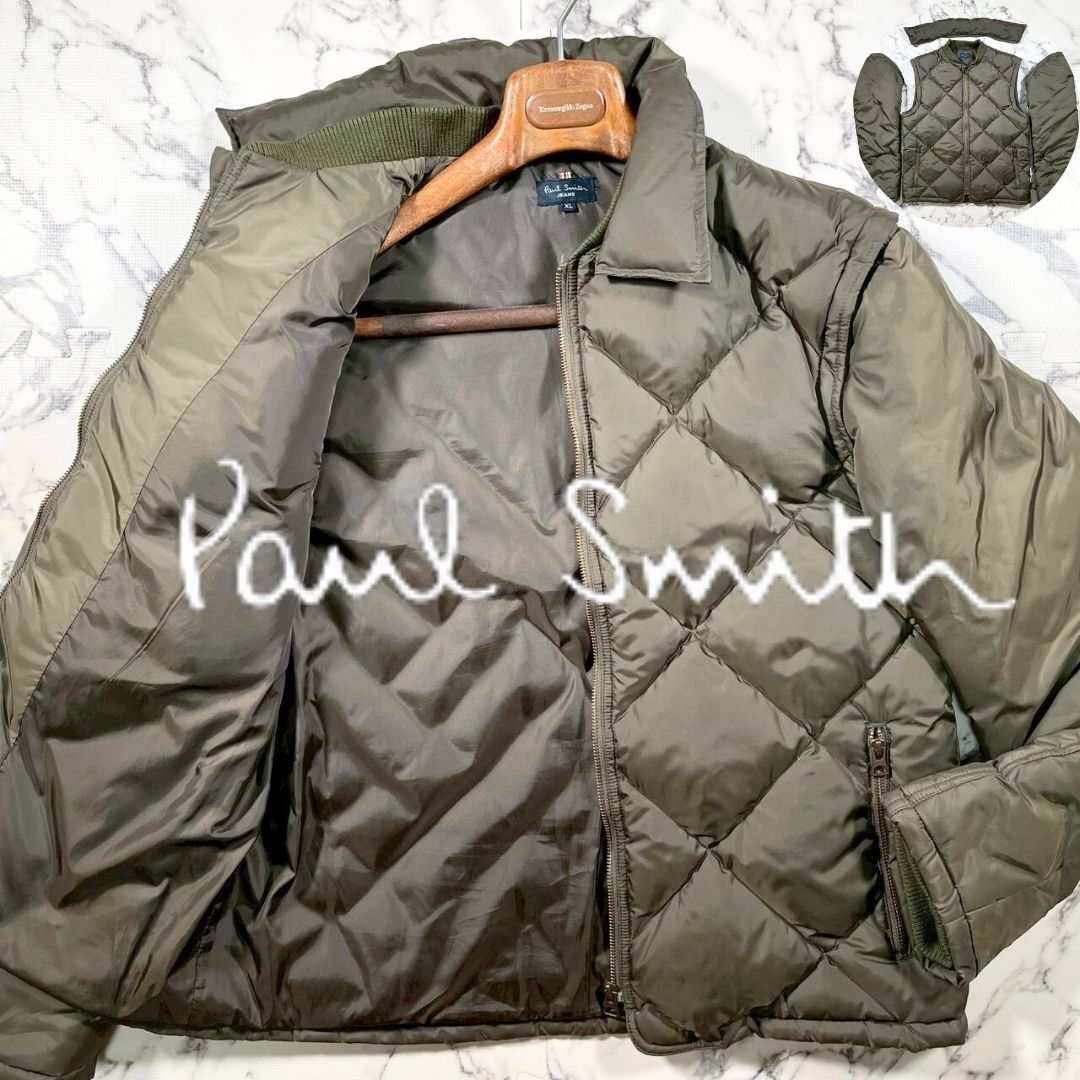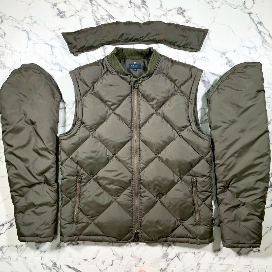 極美品/3WAY着脱可(XL)●Paul Smith ポールスミス ダウン キルティング ジャケット MA-1 ブルゾン ベスト アウター メンズ 秋冬 カーキ 緑