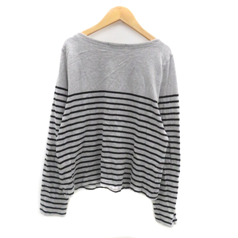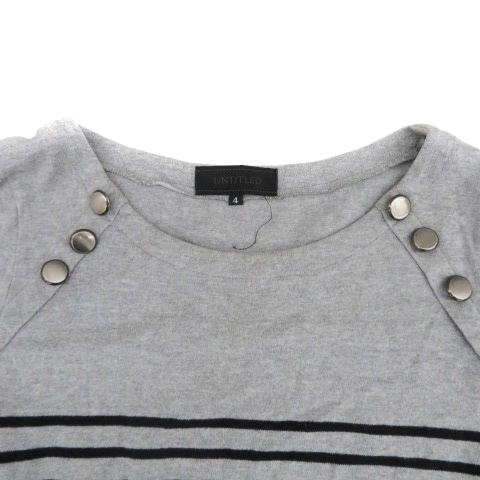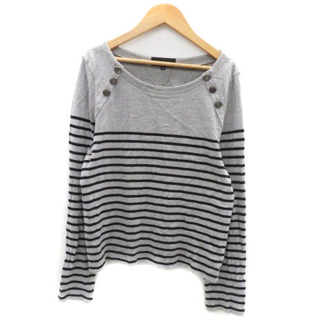 アンタイトル UNTITLED カットソー ラウンドネック 長袖 ボーダー柄 4 L グレー 黒 ブラック /HO49 レディース