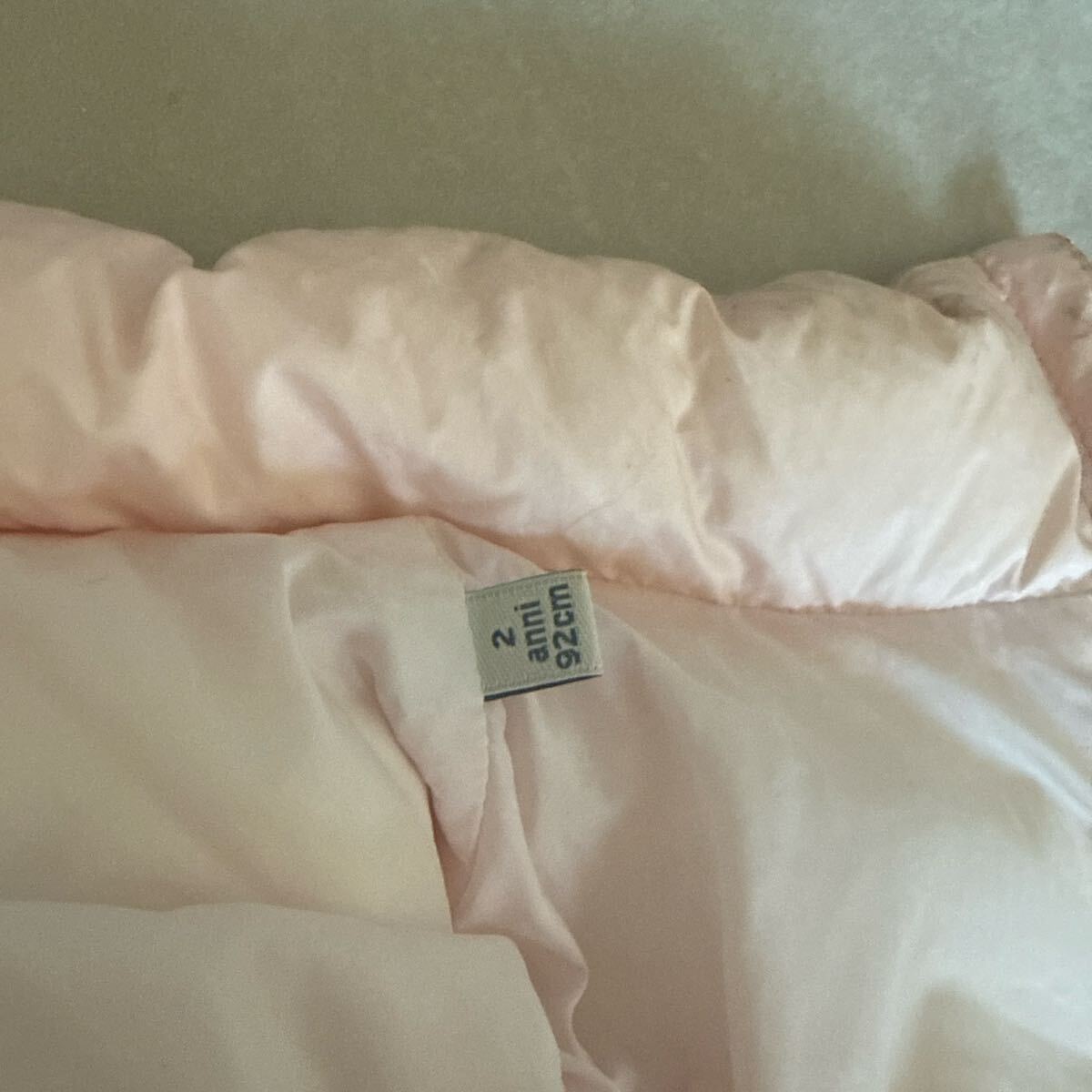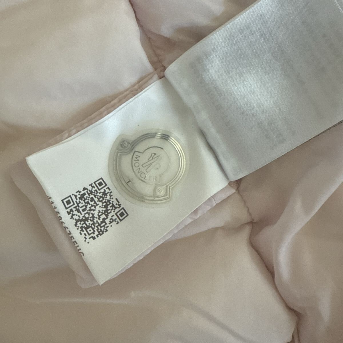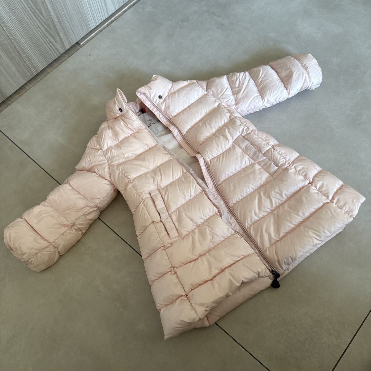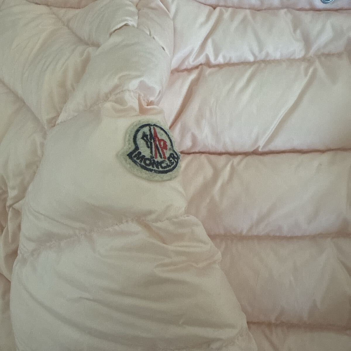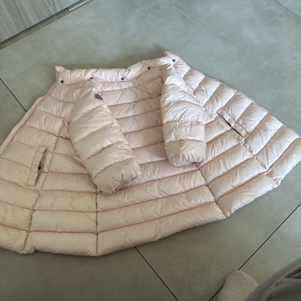 ピンクのMONCLERダウンコート、軽量で暖かいデザインです。