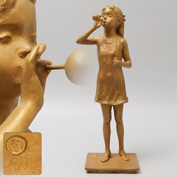 ご覧いただきありがとうございます。 彫刻家【矢野秀徳】ブロンズ像 しゃぼん玉 女の子 62/950 置物 高さ35.5cmの出品です。