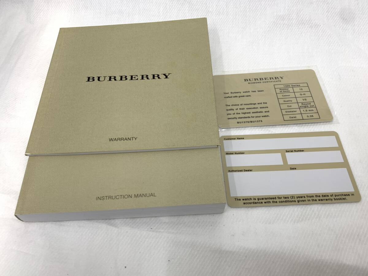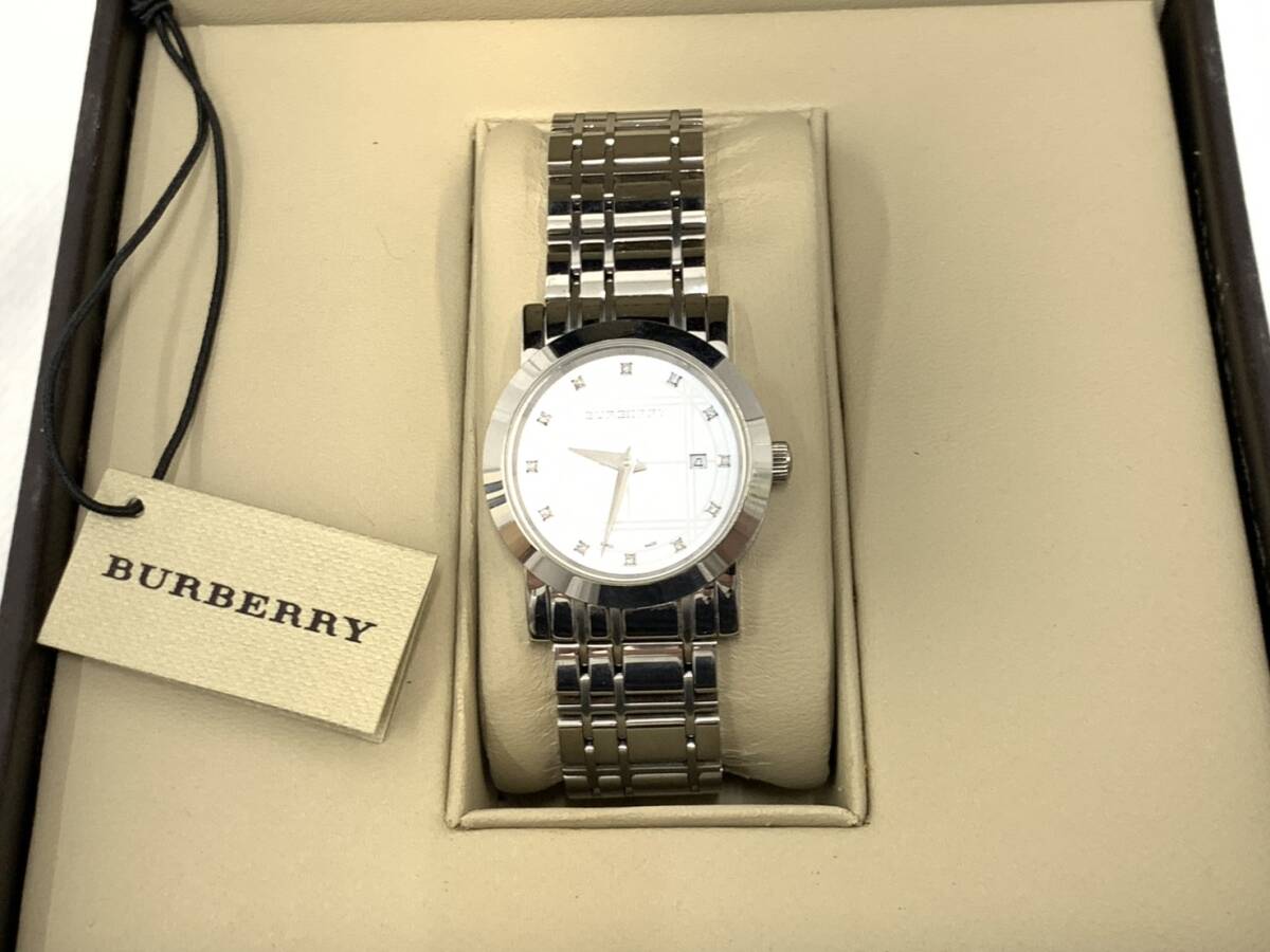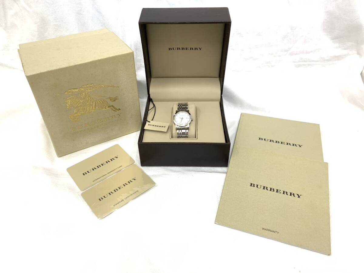 | #5576【1円スタート】BURBERRY バーバリー レディース 腕時計 シェル文字盤 BU1370 デイト クォーツ 箱 タグ 説明書付【破格】 | ||