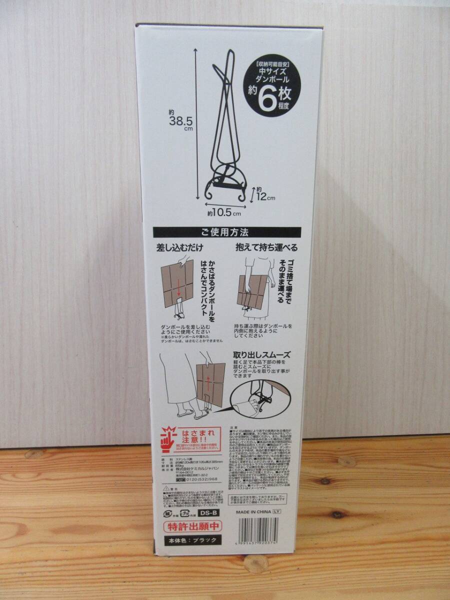 【11-17】はさんで運べるダンボールストッカー 色・黒 高さ 38.5cm 中サイズダンボール6枚程度収納可 ステンレス鋼 ①