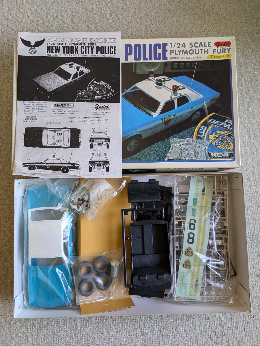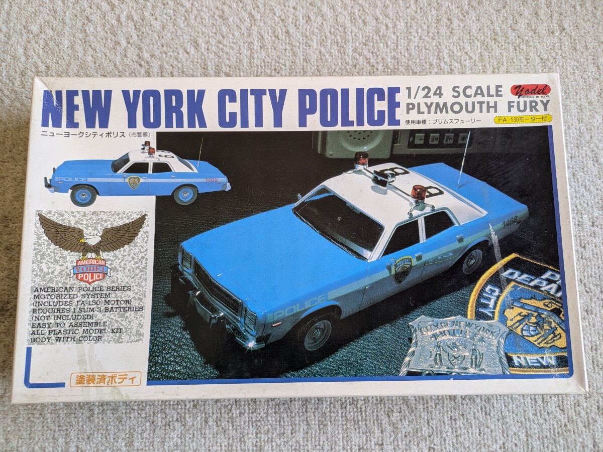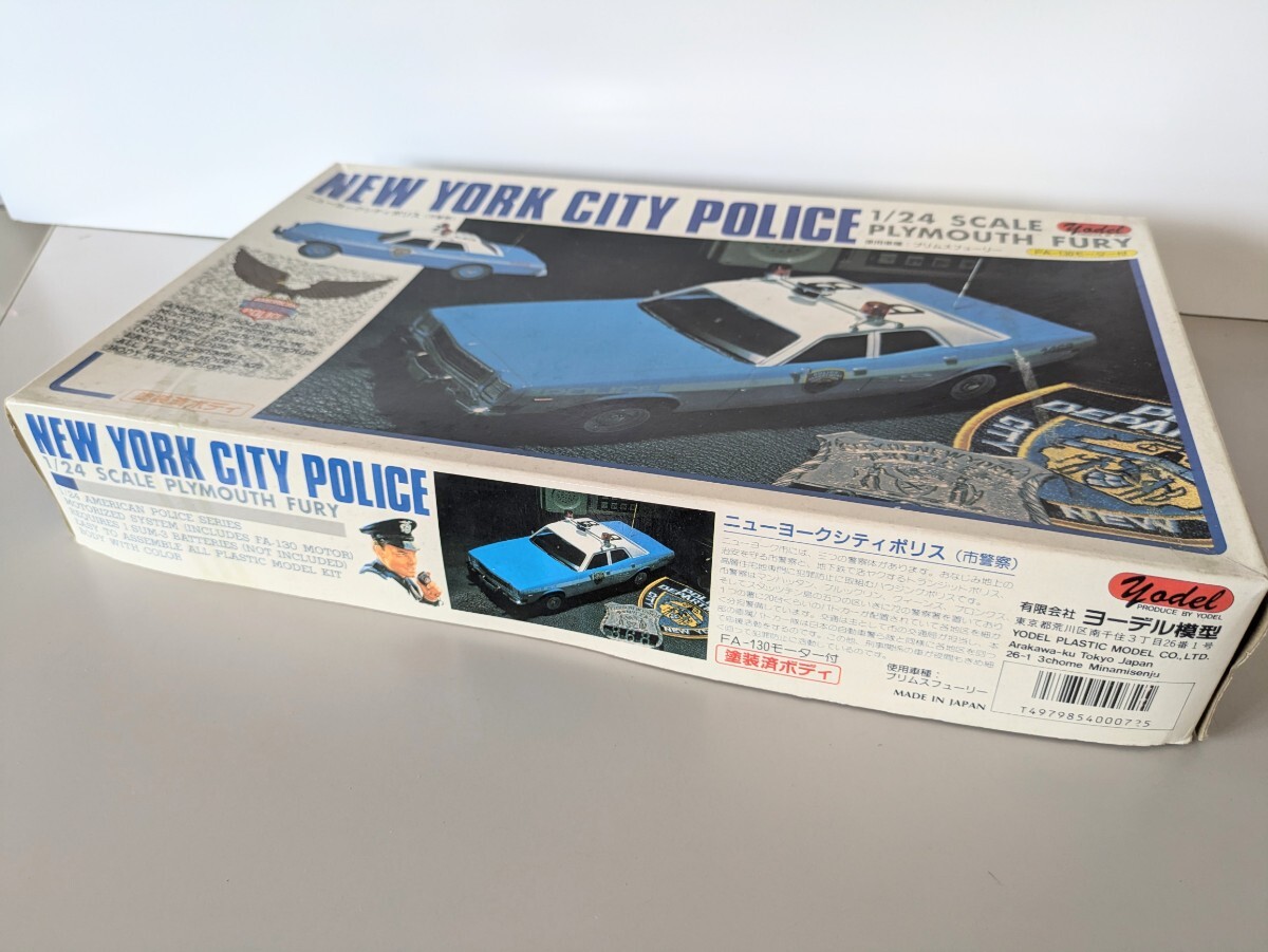 1/24 ヨーデル ニューヨークシティポリス プリムスフューリー未開封新品です。当時物でとても貴重だと思います。通年劣化のため、箱に汚れ、折れ、日焼けなどの痛みがあります。デカールは使えるかわかりません。写真をよく判断をして、完璧を求める方は入札しないでください。NC/NRでお願いいたします。