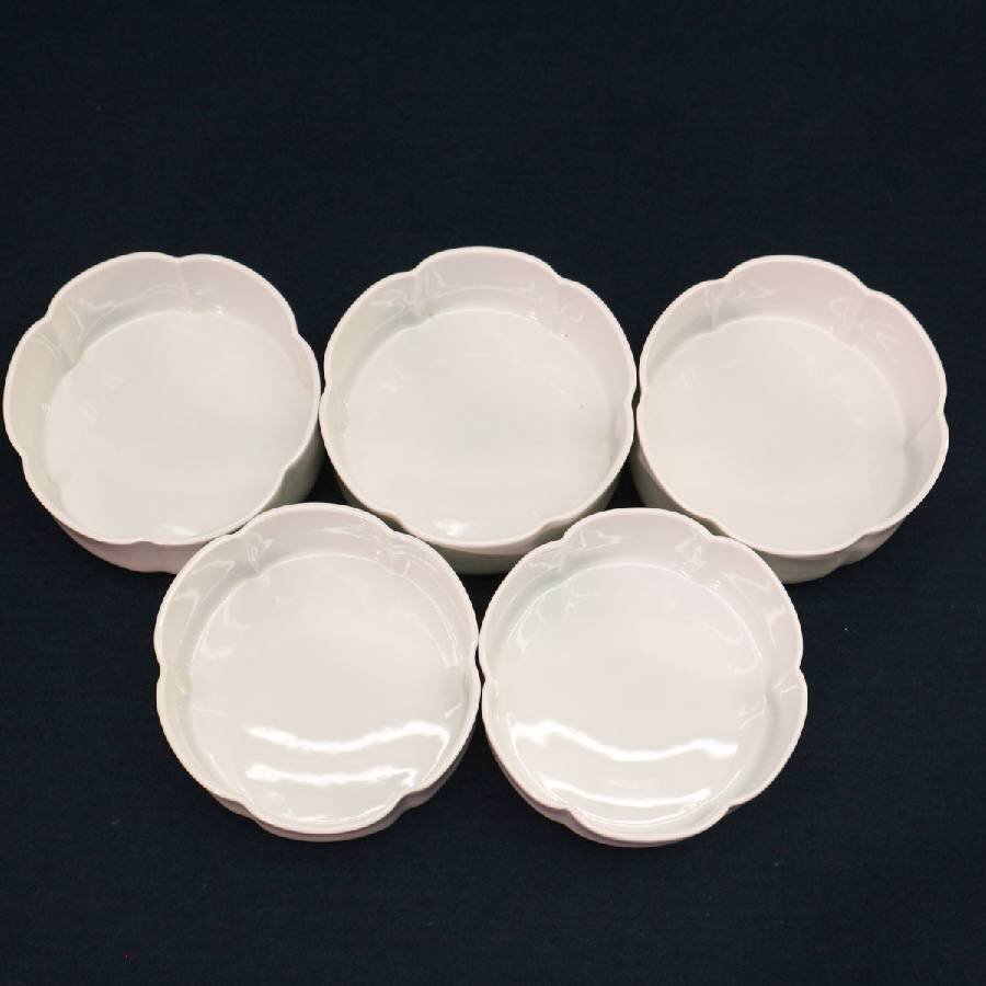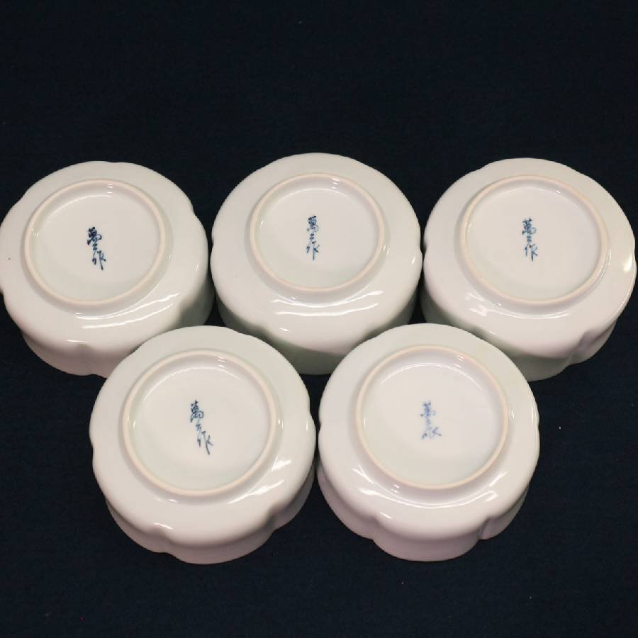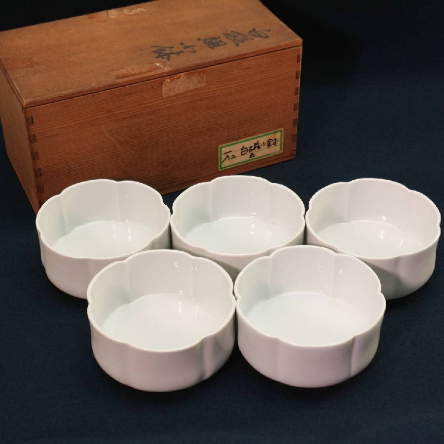 人間国宝 有田焼 井上萬二作 白磁組小鉢 向付 5客 共箱付き◆304f11