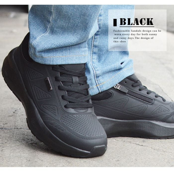 新品■26.5cm EDWIN エドウィン スニーカー メンズ 防水 カジュアル 軽量 防滑 幅広 3E EEE コンフォート サイドジップ 靴【エコ配送】