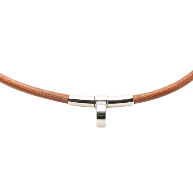 エルメス キテ チョーカー シルバー ブラウン メタル レザー レディース HERMES 【中古】
