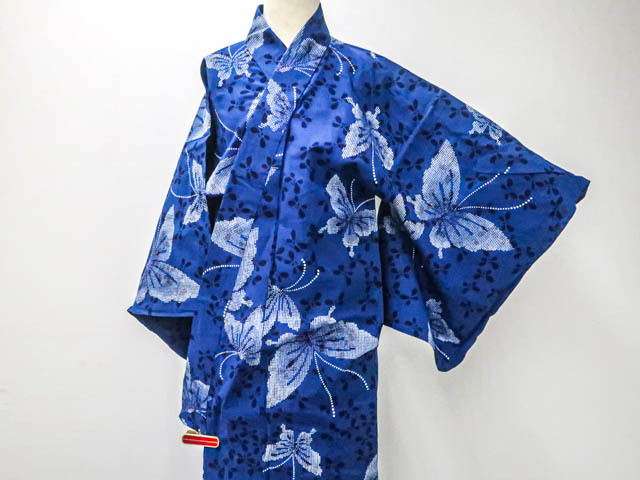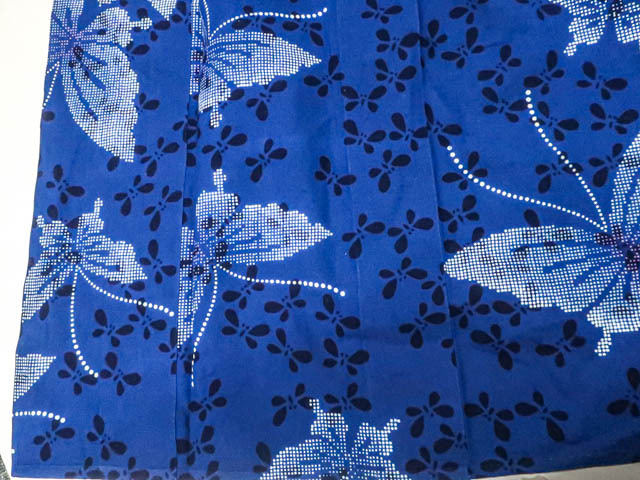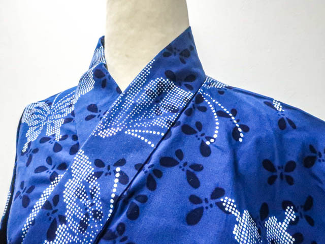 リサイクル商品のため、下前薄汚れがございますが着用可能なお品です。 肩当付でございます。 地色は青 です。 1枚目の画像が近いお色かと思われます。 素材は綿です。 |