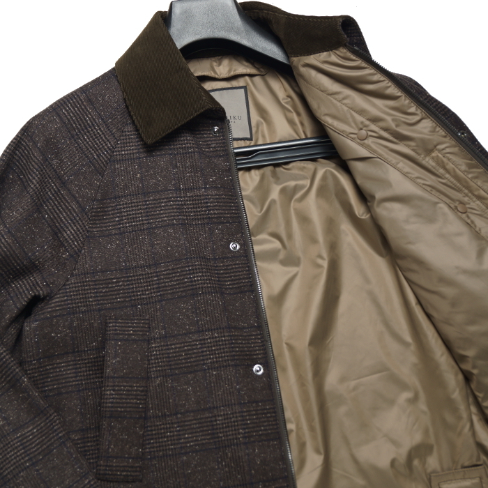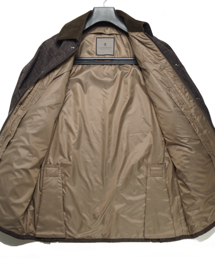 ■ 五大陸 ハンティング ジャケット オーセンティックな英国調アウトドアジャケット スタイルに上質なウール素材を使用して品良く仕上 げた、五大陸のハンティングジャケット・ブルゾン。 素材には100年以上にわたり日本の毛織物産業を牽引 する「山栄毛織」のグレンチェック ツイード調シルク混 ウール生地を使用しています。膨らみがありソフトで 滑らかな手触り、シルクを混紡する事で上品な光沢が あり、高級感があります。 季節感のあるきれいめカジュアルはもちろん、ビジネス シーンまで幅広く対応する、これからのシーズンにおすす めの一着です。 《仕様》 フロントダブルジッパー+5ドット釦/サイドスリッド/ 総裏//内ポケット大2 ☆新品・ タグ付 ㈱オンワード樫山の国内正規品。 定価¥69,300-税込みのお品です。 商品詳細 【ブランド】 五大陸 gotairiku 【品名】 グレンチェック ハンティングジャケット 【素材】 表地:毛79% 絹21% 表衿:綿100% 台衿内側:綿 裏地:ポリエステル 【カラー】 ダークブラウン系 (COL 435) 【サイズ】 表記サイズ M 実寸 肩幅 CM (ラグランの為計測不可) 身幅 56 CM (脇の下付け根の直線の長さ) 裄丈 86 CM 着丈 76 CM (多少の誤差はご了承ください。) 【製造国】 CHINA 【シーズン】 秋冬 【状態】 新品・㈱オンワード樫山の国内正規品。 |
