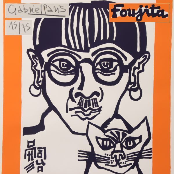 ご覧いただきありがとうございます。 真作 【ガブリエル パリス】 「藤田と猫」 リトグラフ 15/15の出品です。