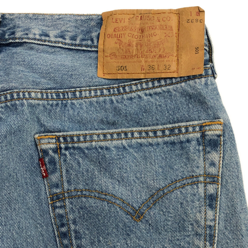 | 【商品管理番号】 U9802 【ブランド】 Levi's/リーバイス 【サイズ】 W36 L32 【実寸サイズ】 ウエスト:約84cm 股上:約29cm 股下:約79cm わたり幅:約31cm 裾幅:約21cm 【主な素材】 表地 : コットン 【色】 ブルー 【仕様】 生産国 : USA製 90年代 501 【状態】 汚れ:腰、ヒップ、もも、ひざ、スネ、ふくらはぎ | |||