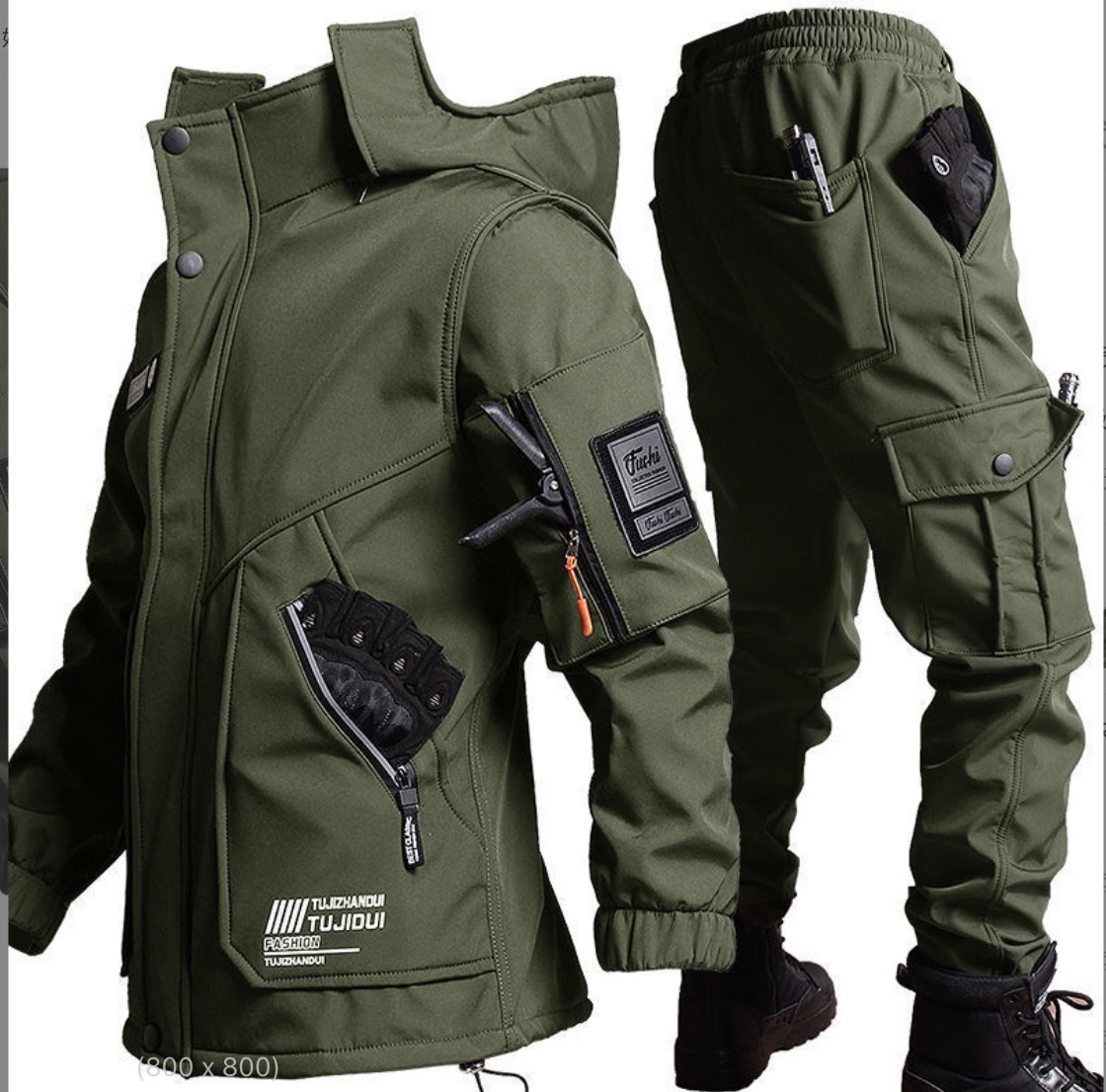 秋冬新作 防水防風ジャケット 防寒対策 上下セット アウトドアスポーツウェア 釣りセット 釣り服 グリーン