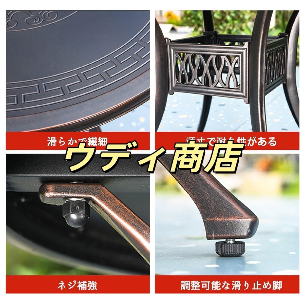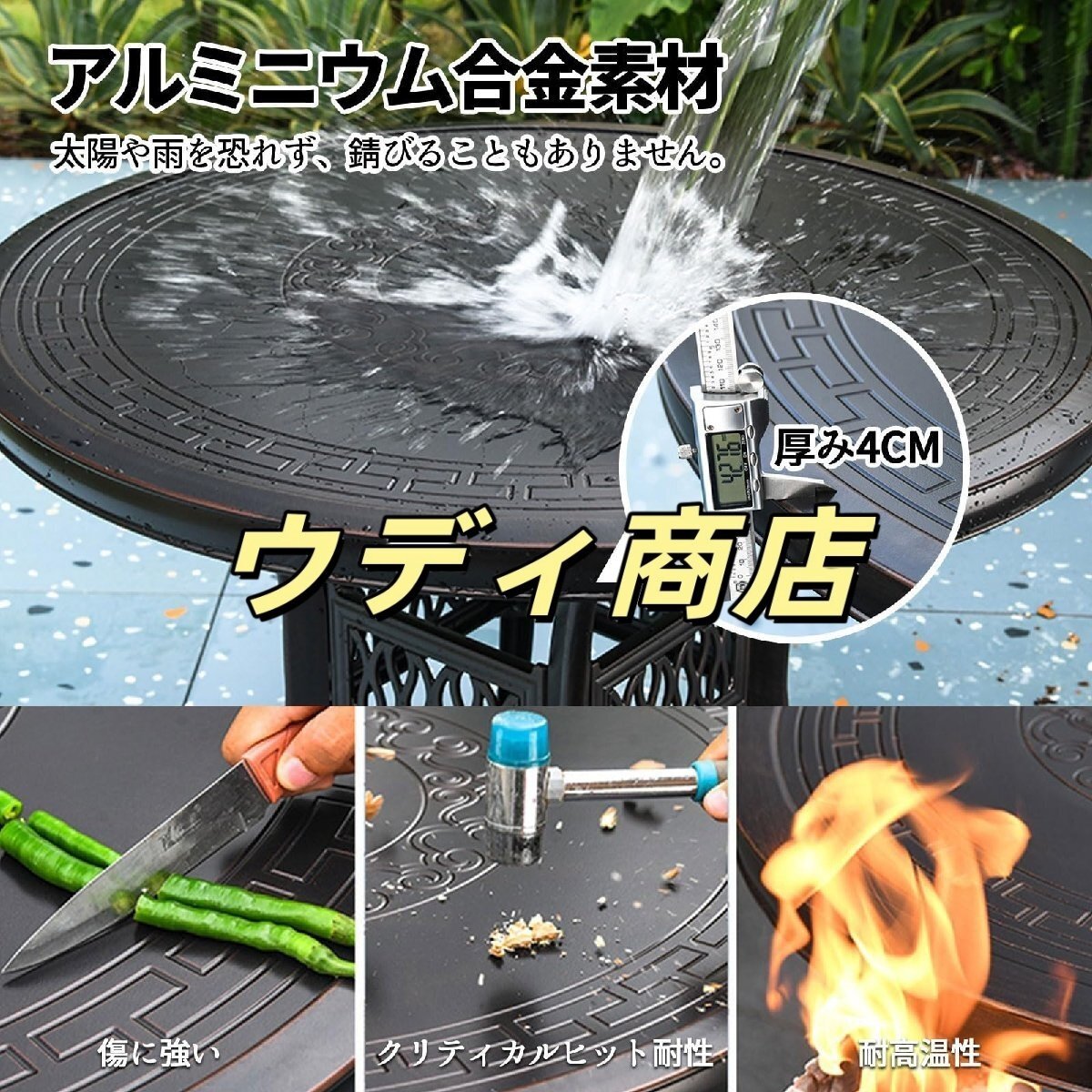 お手入れとメンテナンスが簡単: 屋外 テーブルセット鋳造アルミニウムのテーブルトップとアルミニウム合金のフレームは表面が滑らかで、お手入れが簡単です。テーブルと椅子は汚れや傷に強く、腐食に強く、丸洗い可能なので、屋外での使用に最適です。
