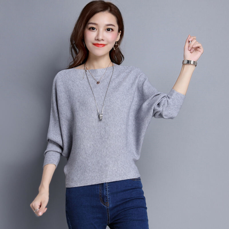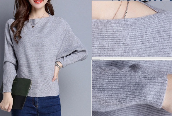 リブニット セーター グレー 長袖ドルマンスリーブ シンプルデザイントップス 薄手だから重ね着ok リブニットでスタイルアップ 新品
