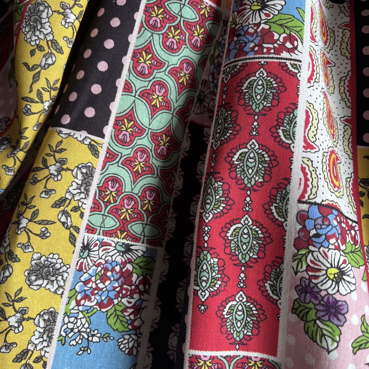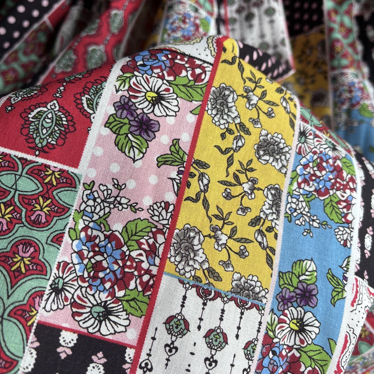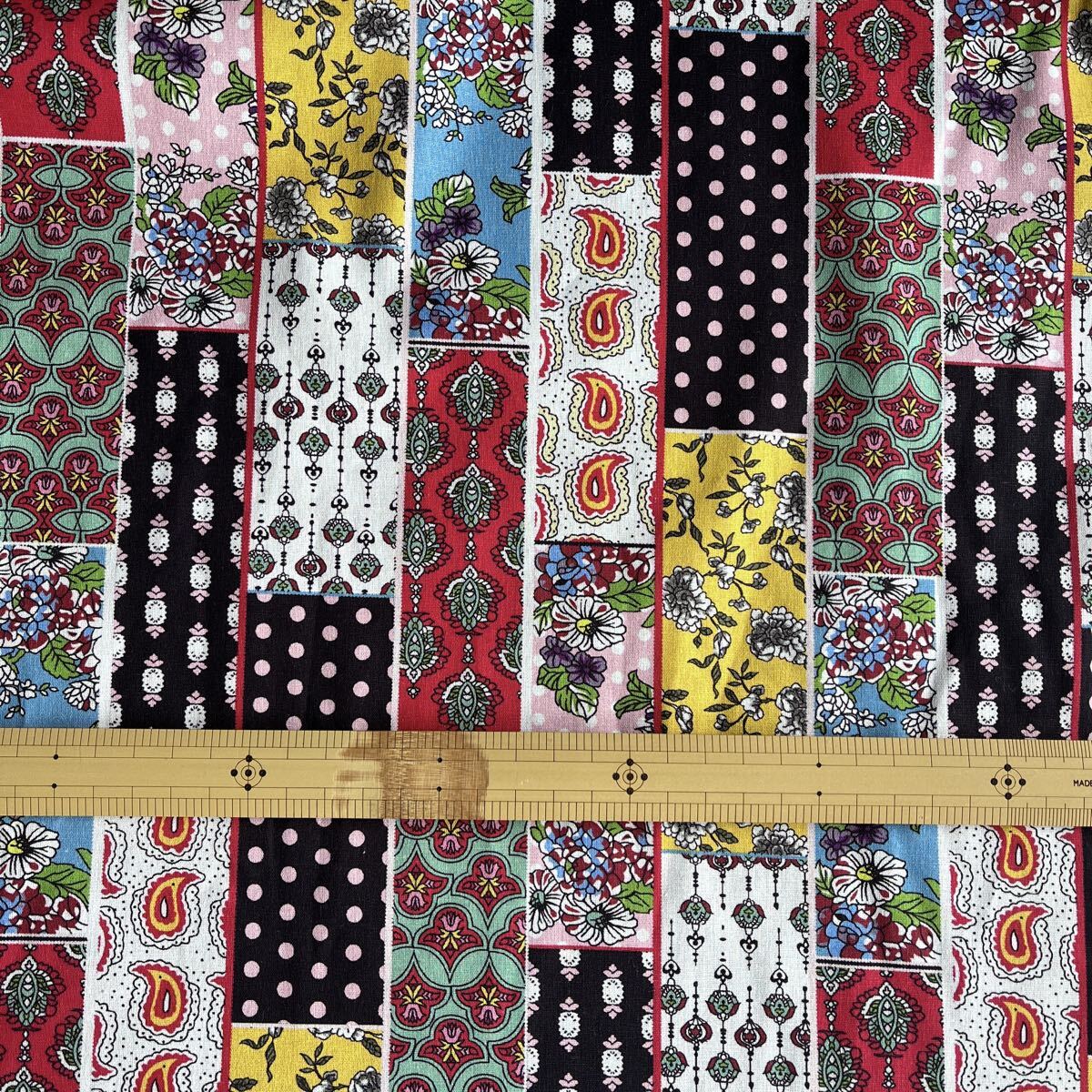 レトロ感たっぷりの花柄パッチワークプリント生地。