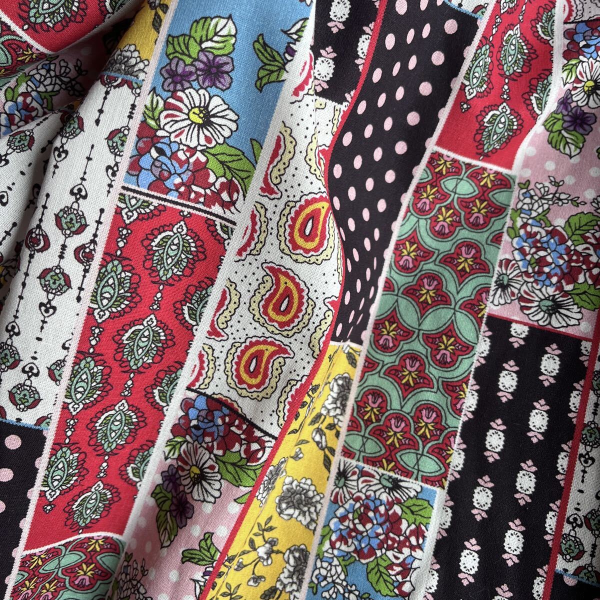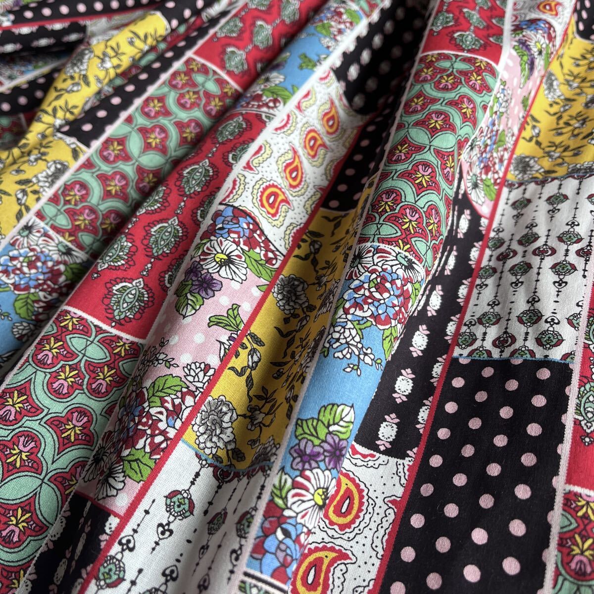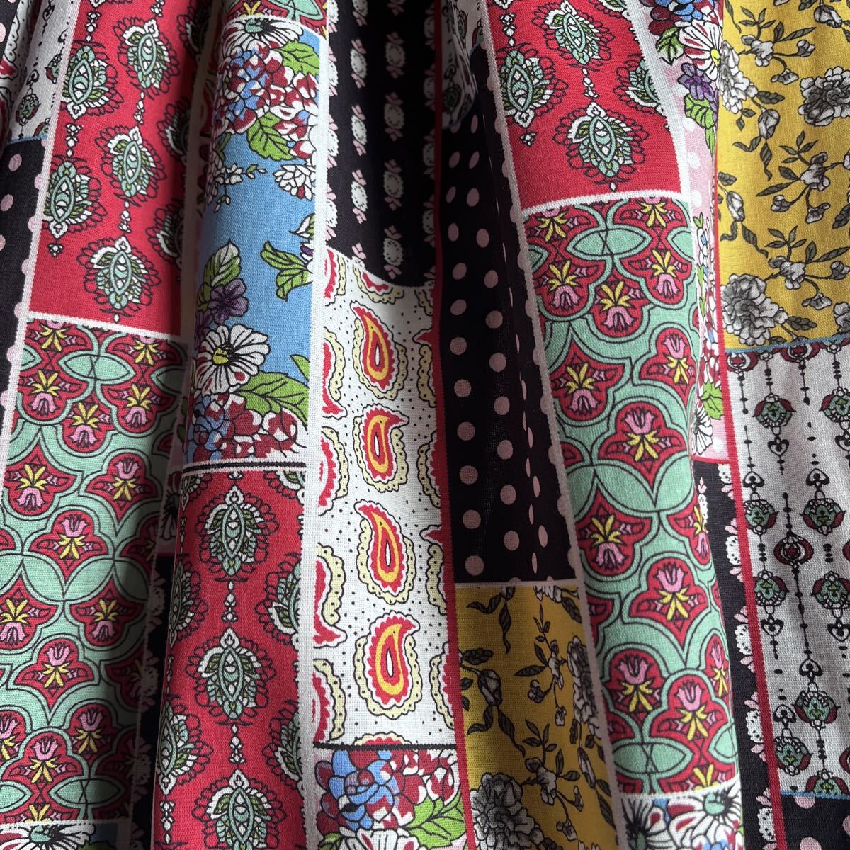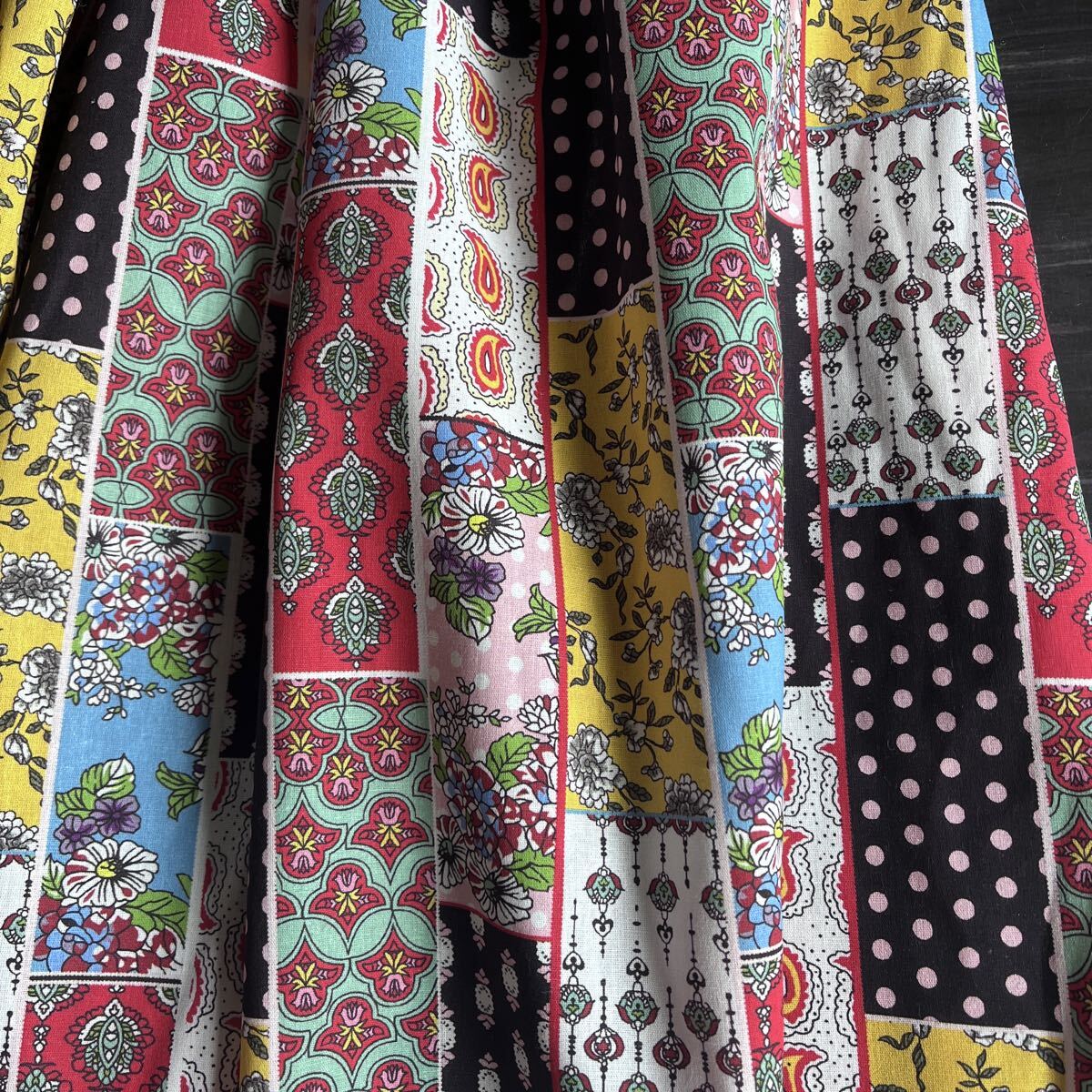 レトロ感たっぷりの花柄パッチワークプリント生地。