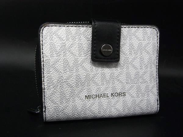 ■美品■ MICHAEL KORS マイケルコース MK柄 PVC×レザー コインケース コインパース キーケース 小銭入れ 鍵入れ ホワイト系 DJ0126