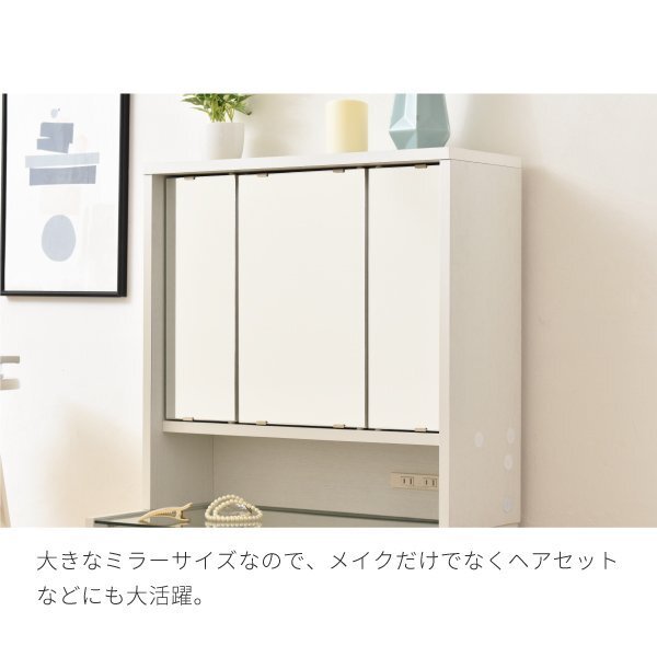| お手持ちのデスクに取り付けて使えるドレッサーパーツ。 メイクやヘアアレンジの際に役立つ三面鏡タイプです。 ミラーの中には高さを調節できる棚がついているので、 メイクグッズやボトル、スプレーなどもまとめて収納できます。 |