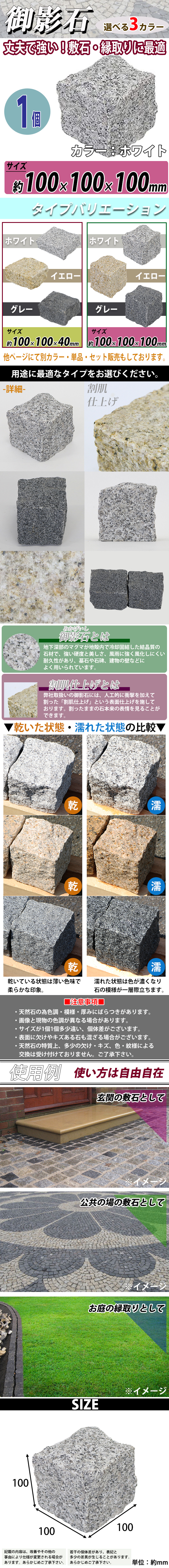 | 商品名 | 送料無料 御影石 ピンコロ石 天然 約幅100×奥行100×高さ100mm 割肌 1個 ミカゲ ピンコロ 敷石 敷材 石材 床材 天然石 花崗岩 花壇 縁 庭 駐車場 玄関 置き石 仕切り 庭石 一丁掛け 1丁掛け スクエア DIY ホワイト mikage1010101p |